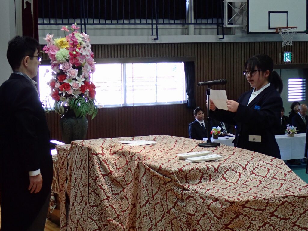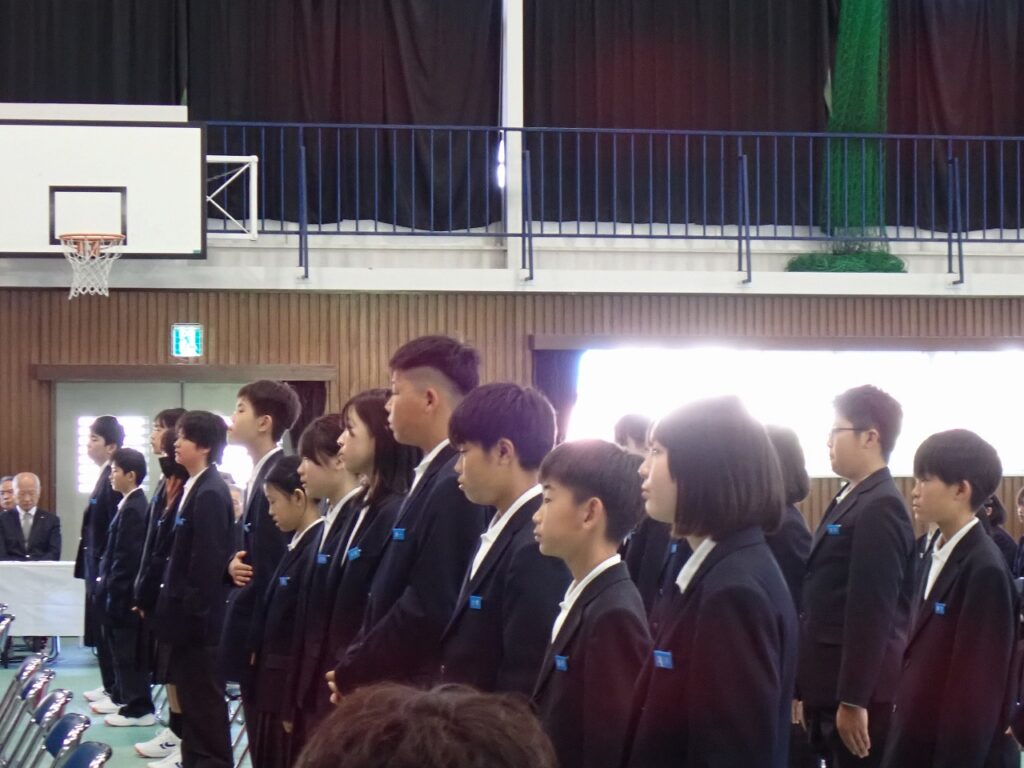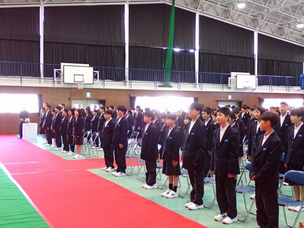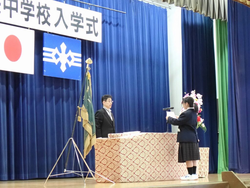 式では、校長より新入生へ温かい歓迎の言葉が送られ、新しい学校生活への期待と励ましが伝えられました。新入生は緊張した面持ちながらも、呼名に元気よく応え、これから始まる学校生活への意欲を感じさせてくれました。