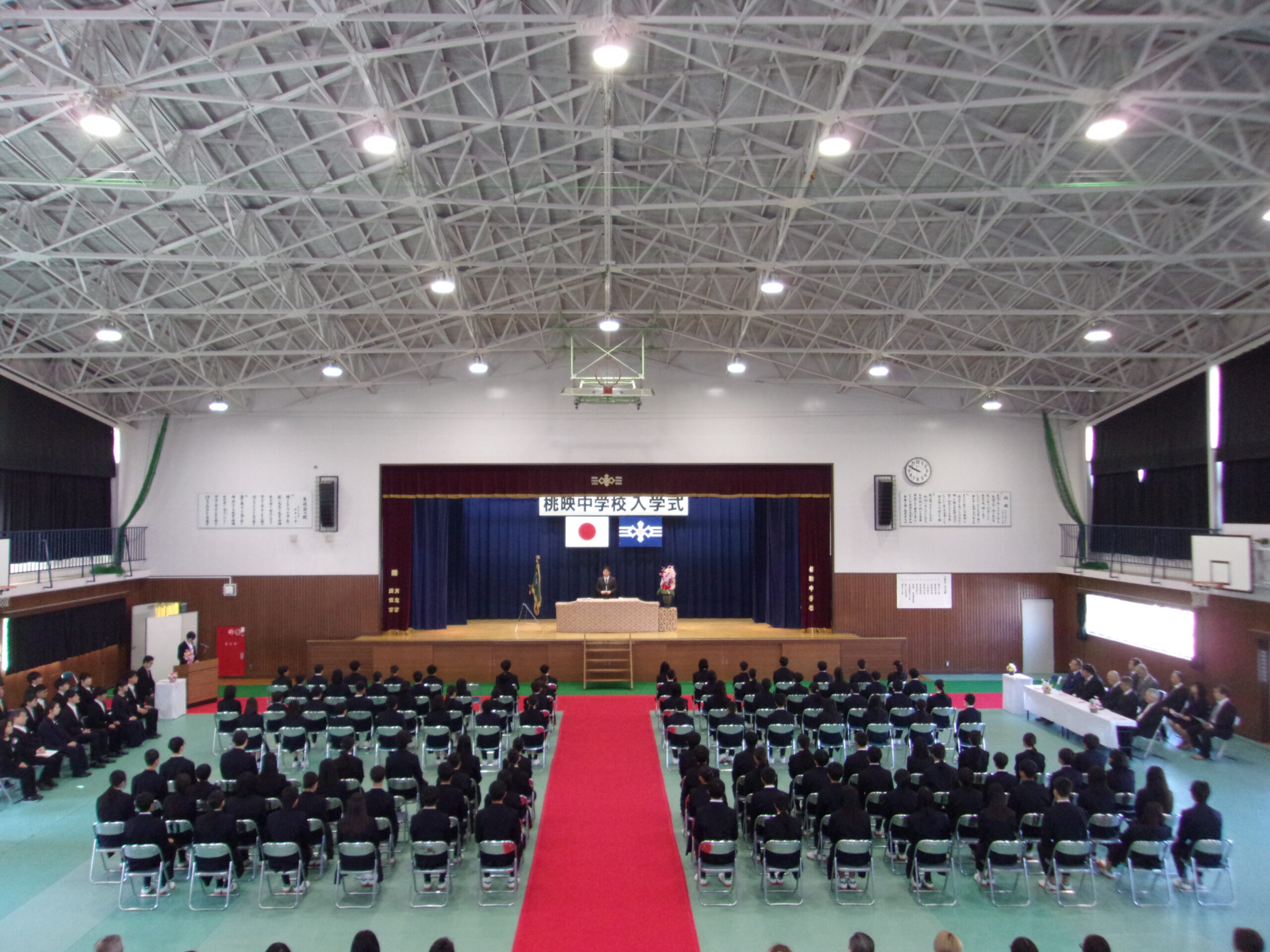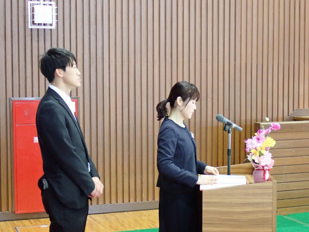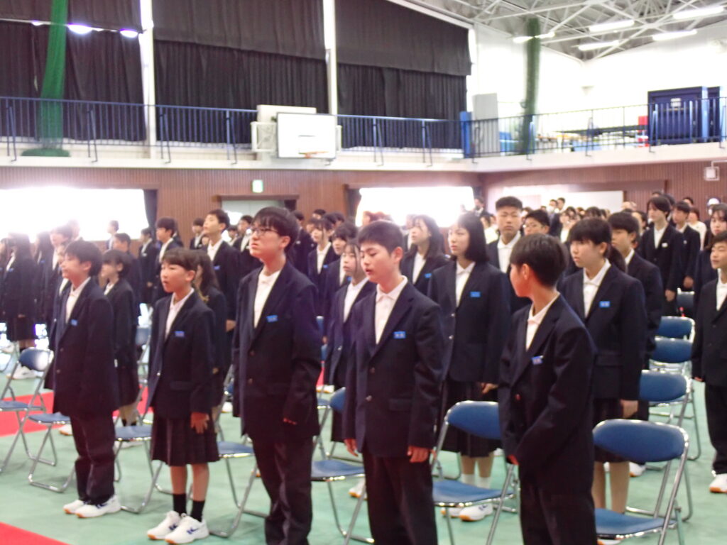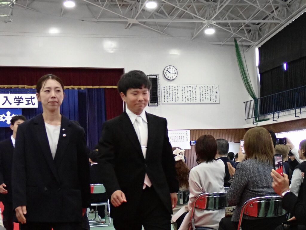 式では、校長より新入生へ温かい歓迎の言葉が送られ、新しい学校生活への期待と励ましが伝えられました。新入生は緊張した面持ちながらも、呼名に元気よく応え、これから始まる学校生活への意欲を感じさせてくれました。