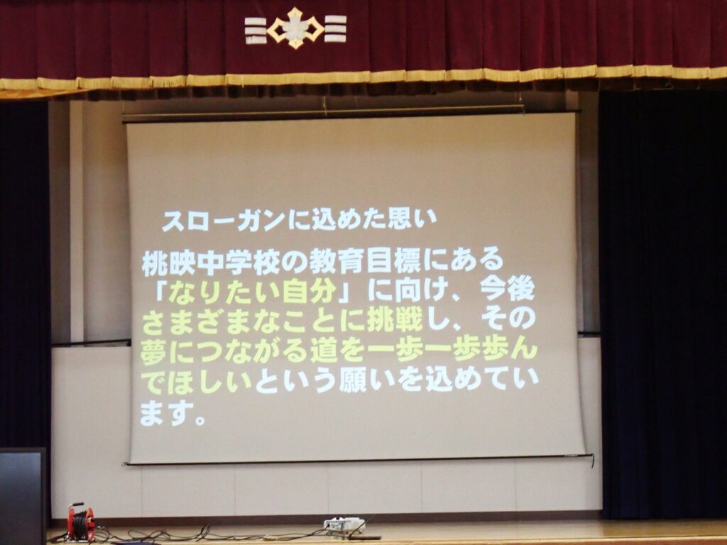 また、学年スローガン「未来への挑戦~夢へとつながる第一歩~」の発表も行われました。