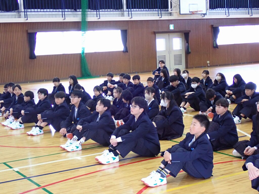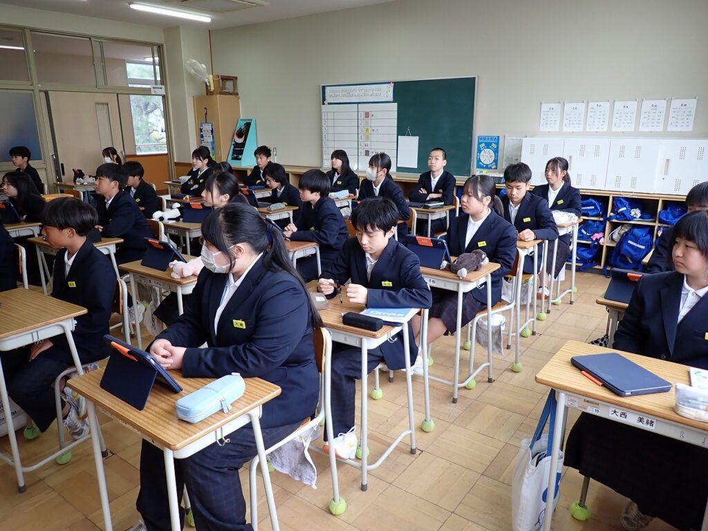 その後、各学級に戻り、「どのように仲間とつながり合っていくか」をテーマに話し合いを行いました。互いの考えを伝え合いながら、人権を大切にした関係づくりについて理解を深める時間となりました。
