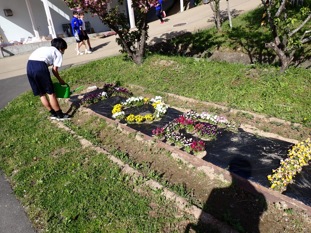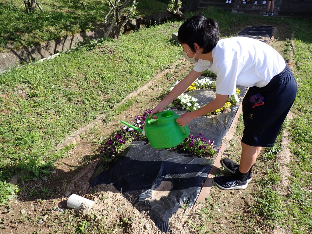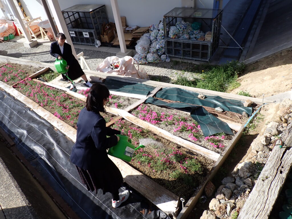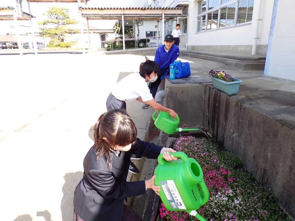 生徒の手で花壇の水やり☆ 日誌 Twitter Facebook はてブ Pocket LINE コピー 2026.04.17 来訪者カウント 17 委員会の活動が始まっています。環境委員が花壇の水やりを行いました。分担しながら丁寧に作業を進め、花壇の環境を整えています。日々の活動を通して、学校の環境づくりに取り組んでいます。