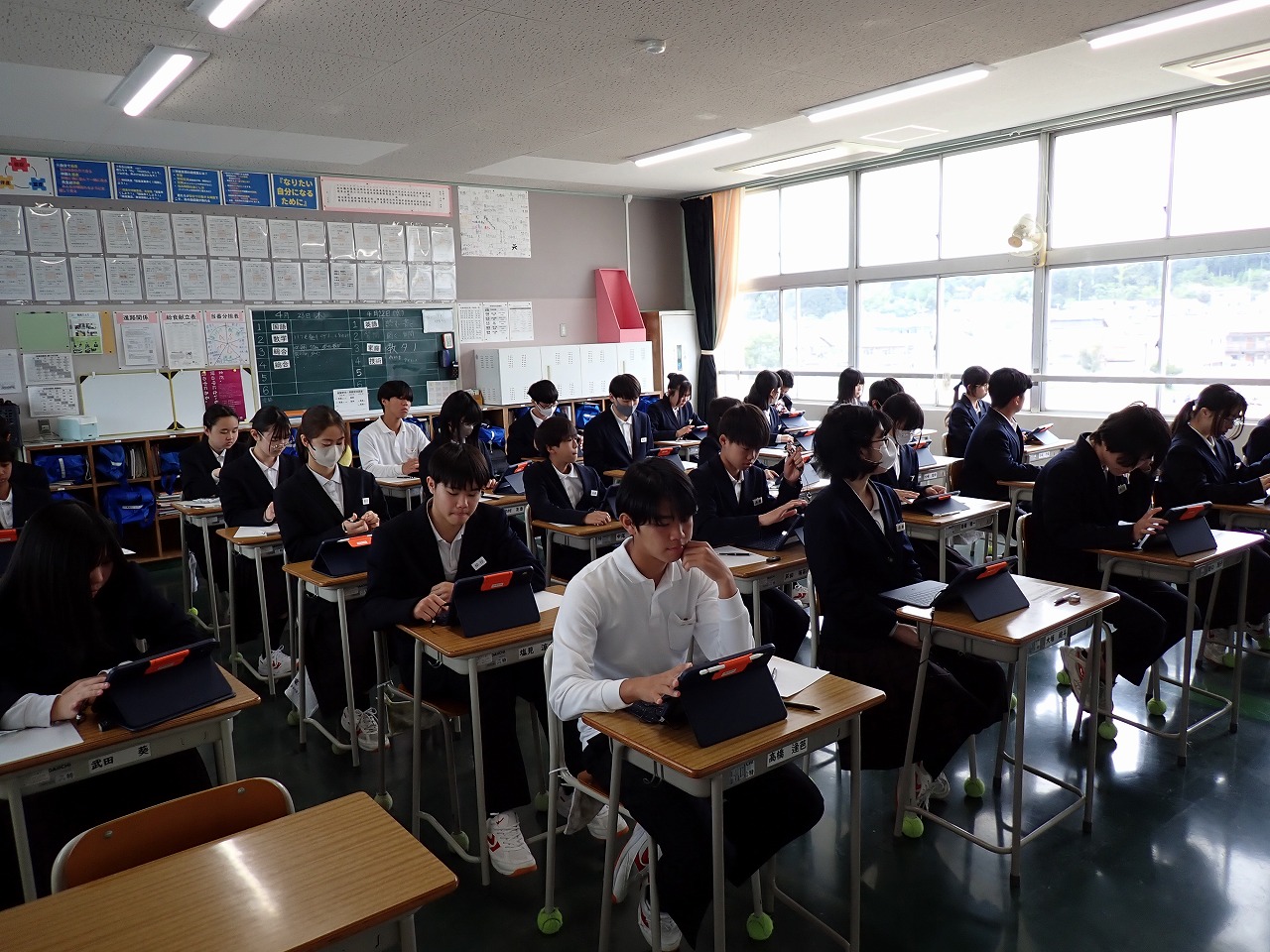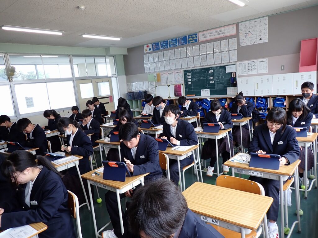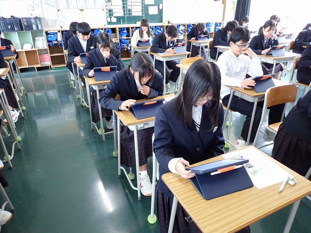 本日、全国学力・学習状況調査を実施しました。1日目は、英語の3技能の調査と質問調査が行われました。生徒たちは、これまでの学習の積み重ねをもとに、真剣な態度で問題に取り組んでいました。また、学習状況に関する調査を通して、自らの学びや生活を見つめ直す機会にもなりました。今後も、一人一人の学力向上とよりよい学習習慣の定着を目指します。