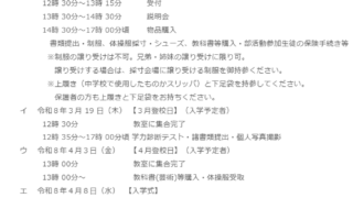 スクールライフ 令和8年度 入学予定者登校日の予定