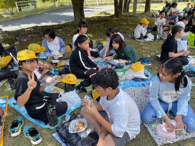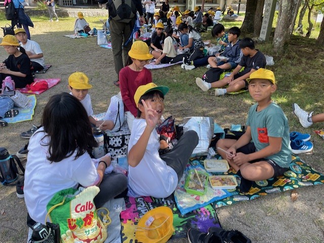 3小学校の子ども達は、無事に少年自然の家に到着して、昼食をとって、これからの活動に備えています。