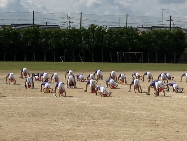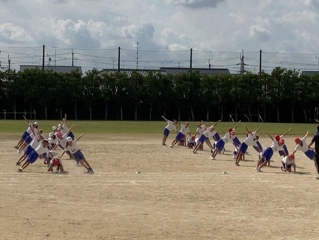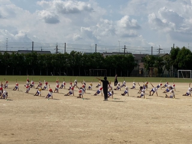 今日から10月、運動会まで3週間を切り、外での練習が始まりました。高学年の組み体操の1人技や3人技、隊形の位置確認が行われていました。これから、他の学年も本格的に外での練習が行われます。本番が楽しみです。