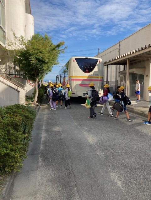 秋晴れのもと、5年生全員、林間学習に「るり渓少年自然の家」へ出発しました。