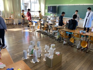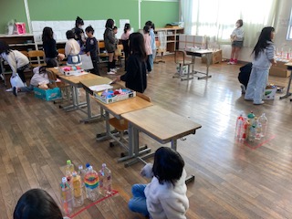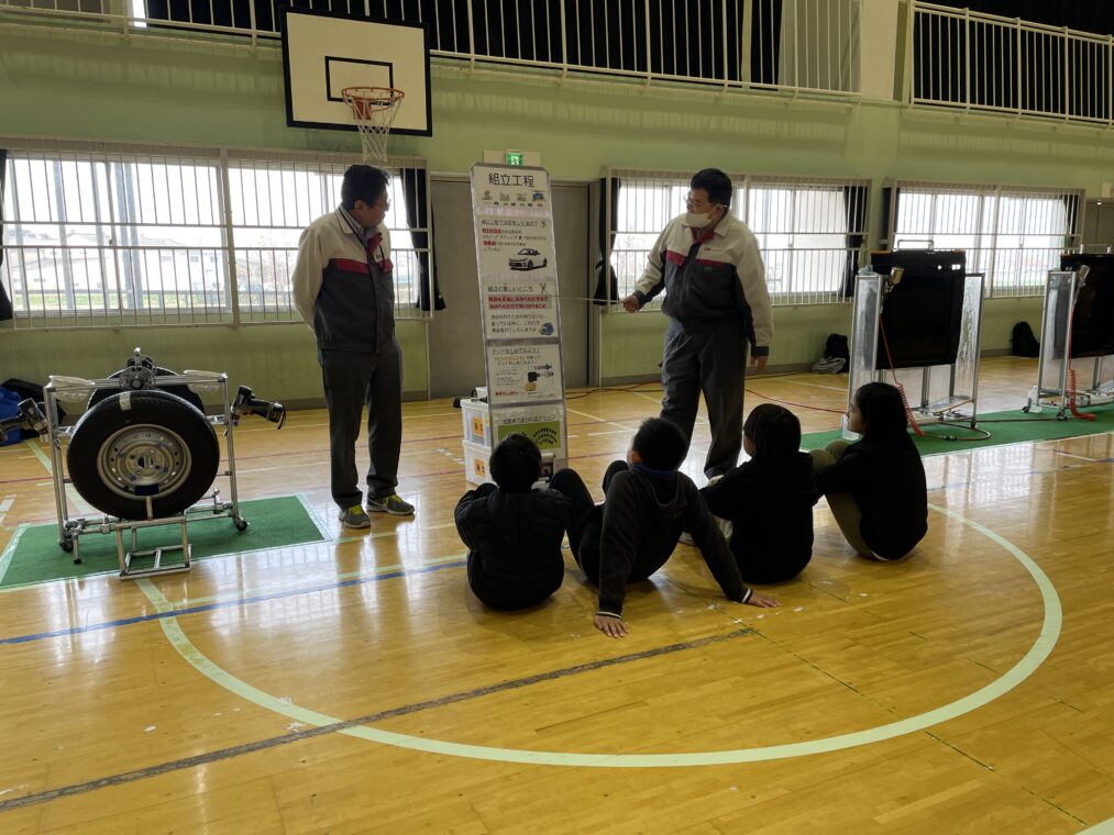 5年生は、自動車メーカー「ダイハツ」の方に来てもらい、ものづくり体験をさせていただきました。自動車のできるまでの行程を各ブースに分かれて、どのようにして部品ができあがり、取り付けられていくのかを実際に体験させてもらいました。