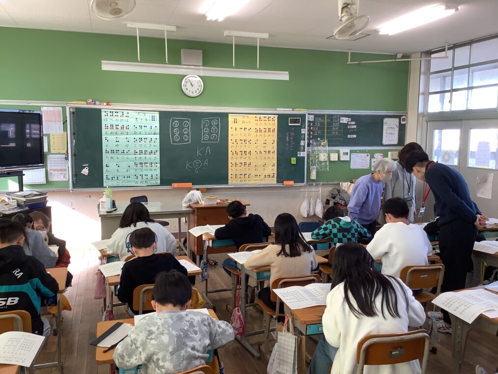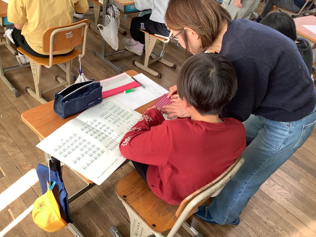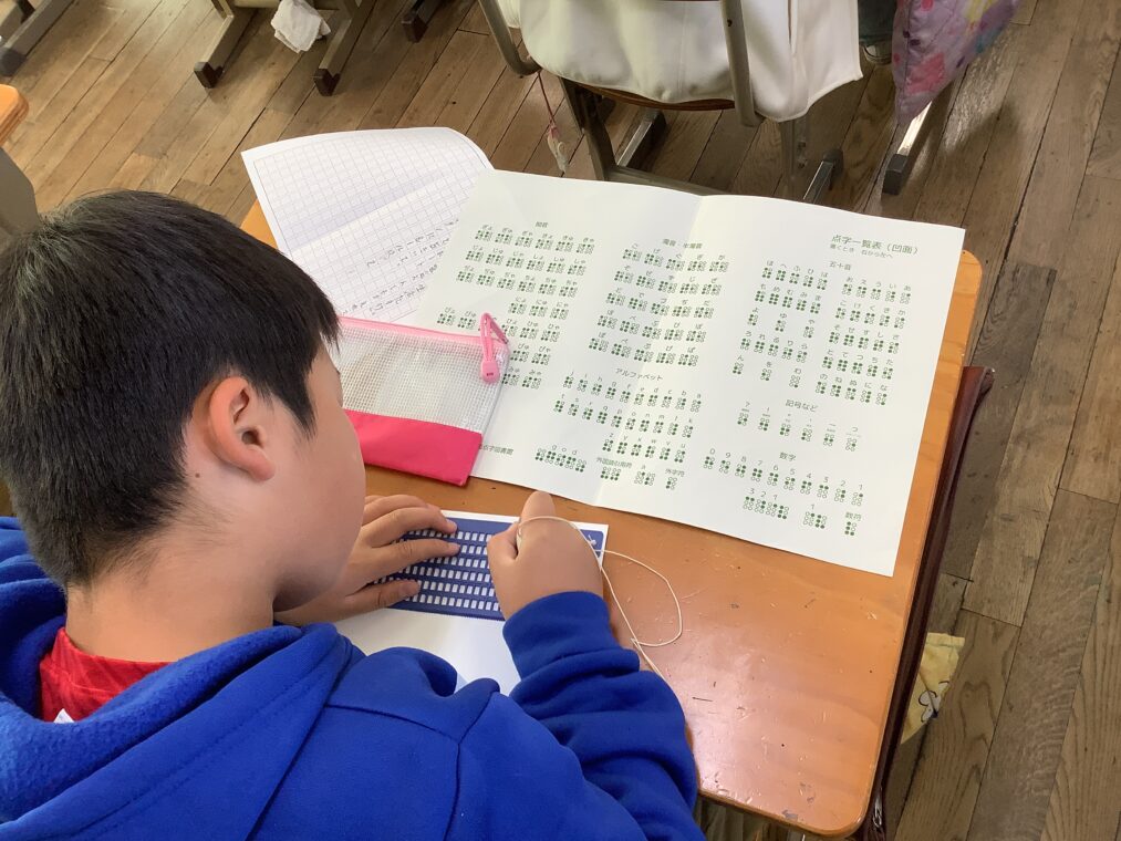 4年生は、障害理解教育として視覚障害についての学習を行いました。目の不自由な方が利用されている「点字」を体験しました。どのような仕組みで文字として認識されているのかを知り、実際に点字を打つ体験ができました。