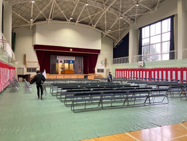 今季一番の寒さ、また午前中には京都でも初雪が見られる大変寒い中、明日の「東角小学校創立50周年記念式典」の準備に保護者の方々にお手伝いいただきありがとうございました。また、明日は記念に残る素晴らしい行事になることを願っております。