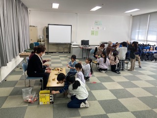 1年生は、地域の皆様の協力を得て、「昔遊び」の体験をしました。6つのグループに分かれて、順番にコーナーを回っていく方法で行いました。6つのコーナーは、「こま」「けん玉」「だるまおとし」「お手玉」「あやとり」「おはじき・メンコ」でした。みんな楽しく体験をすることができました。