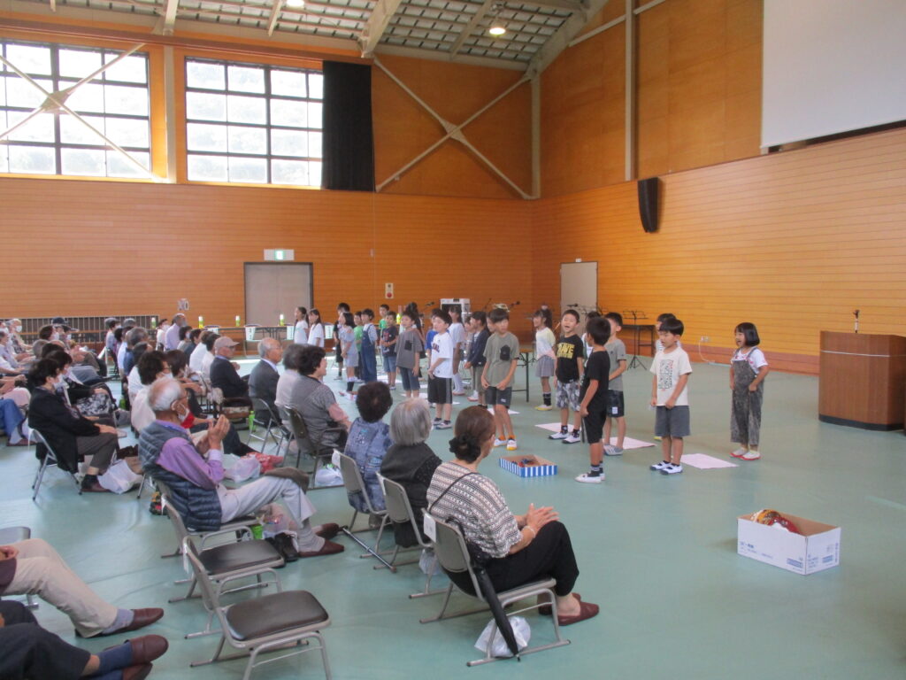9月28日日曜日、豊里地区敬老会に豊里小学校の2年生が参加しました。