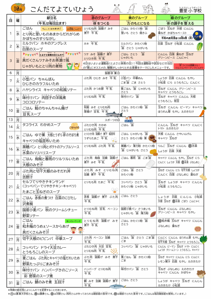 地域のみなさん、これからもよろしくお願いします。 - R7 給食献立表 10月
