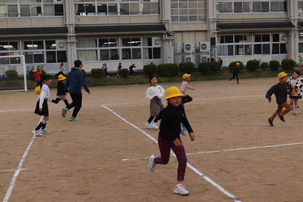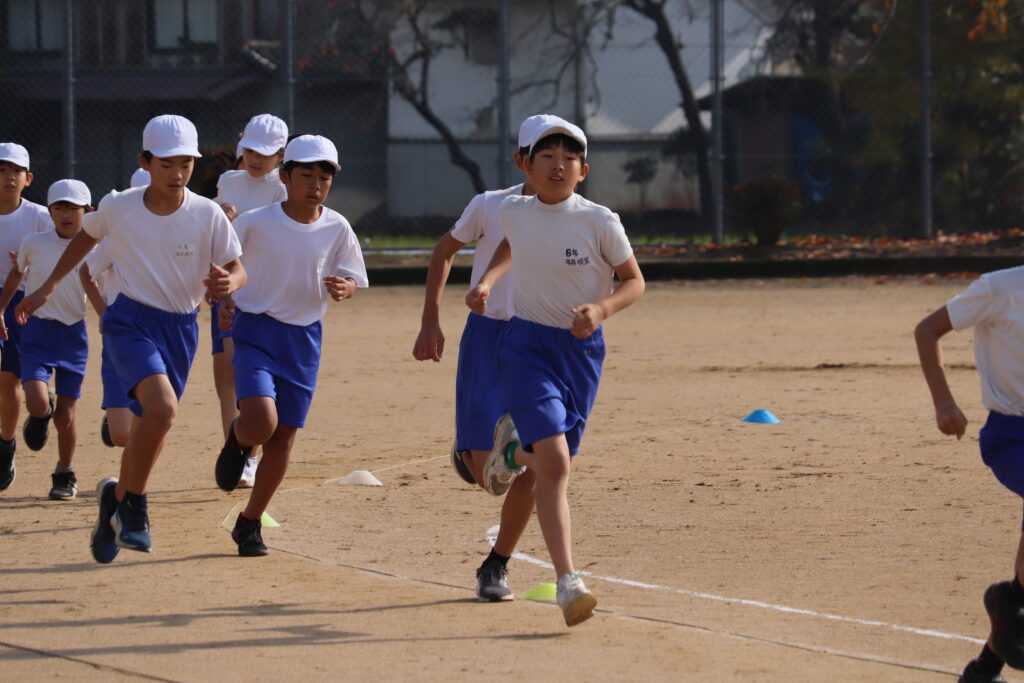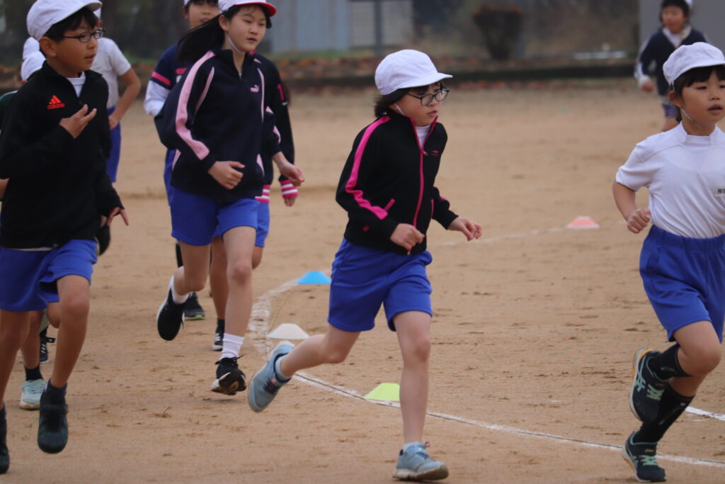 こちらは中学年、持久走記録会に向けた練習です。スタートの瞬間、勢いよく走り出す子どもたち。