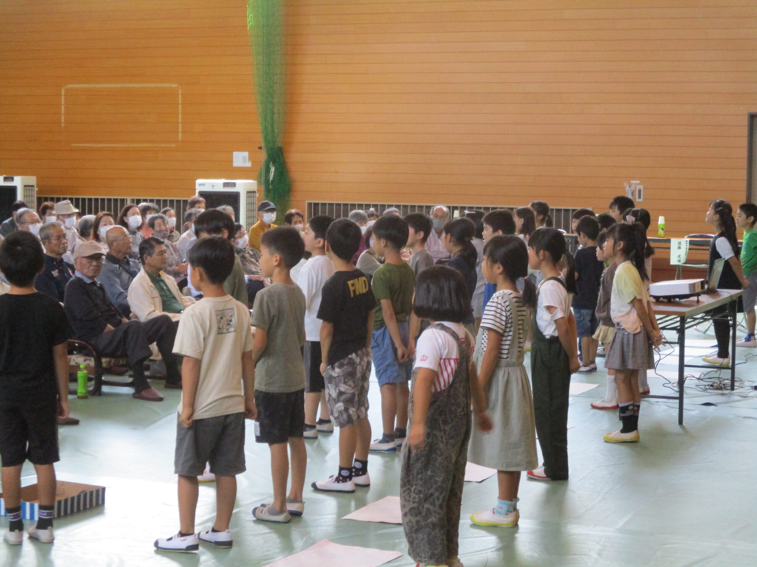豊里地区敬老会 投稿 2025.10.02 9月28日日曜日、豊里地区敬老会に豊里小学校の2年生が参加しました。「手のひらを太陽に」の歌を披露したり、メッセージを送ったりして参加されたおじいさんやおばあさんに元気を届けました。「元気をもらった」「懐かしい音楽を子どもたちに歌ってもらえてよかった」という声を聴かせていただきました。地域のみなさん、これからもよろしくお願いします。
