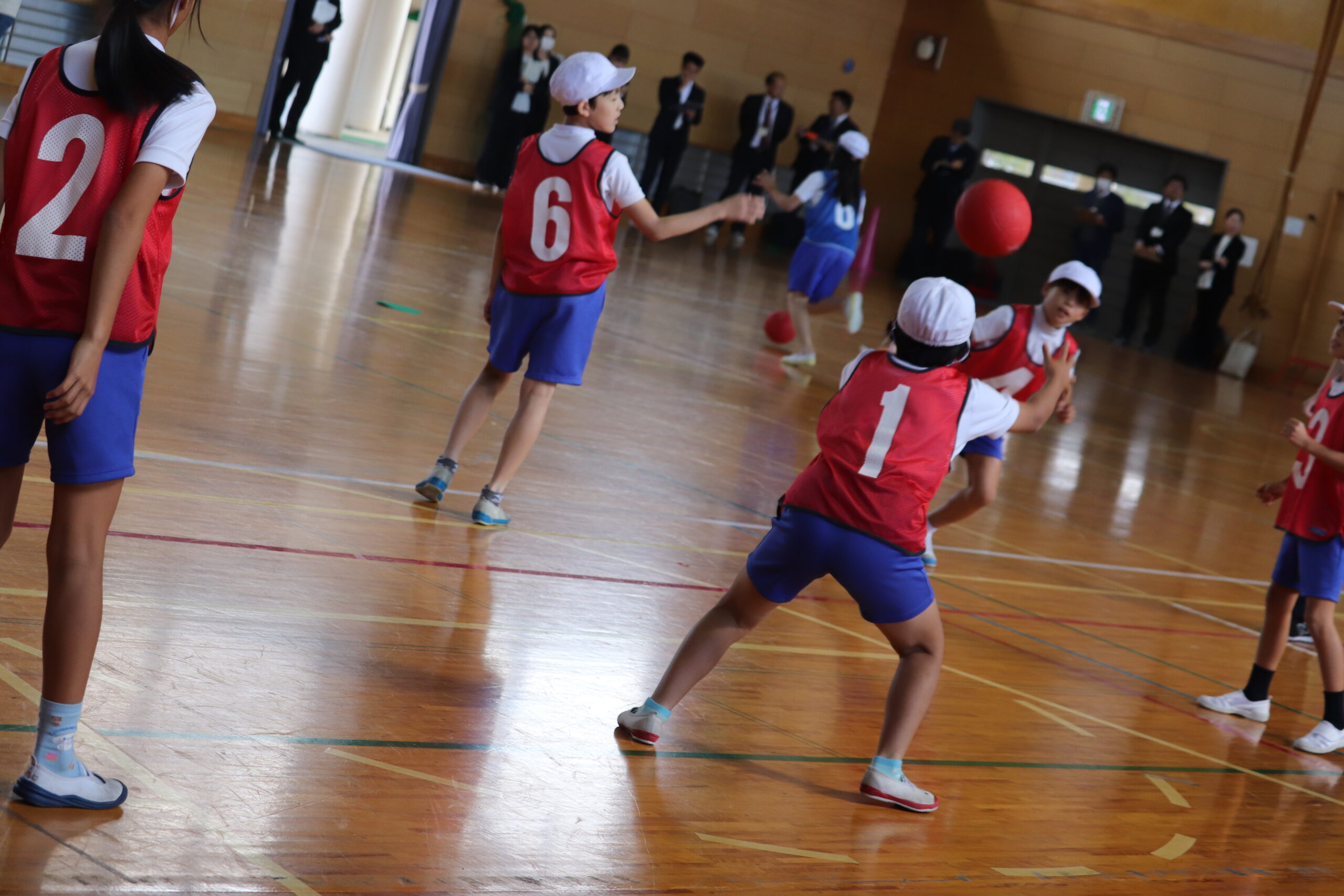 4年生ゴール型ゲーム「ポートボール」の授業を府内全域からのたくさんの先生方が参観に来られました。子どもたちは家庭学習で事前に考え、持ち寄った作戦についてグループで話し合いました。「僕がこう動くから、こっちに行ってパス受けてな!」「ナイスキャッチ‼」とプレーの中で互いにいろいろな声掛けがありました。参観された先生方からは「楽しさを感じている子どもたちの姿があった。」「刺激をいただいた授業でした」など温かい感想をいただきました。子どもたちのための研究がますます深化していく豊里小学校に、今後もご期待ください。