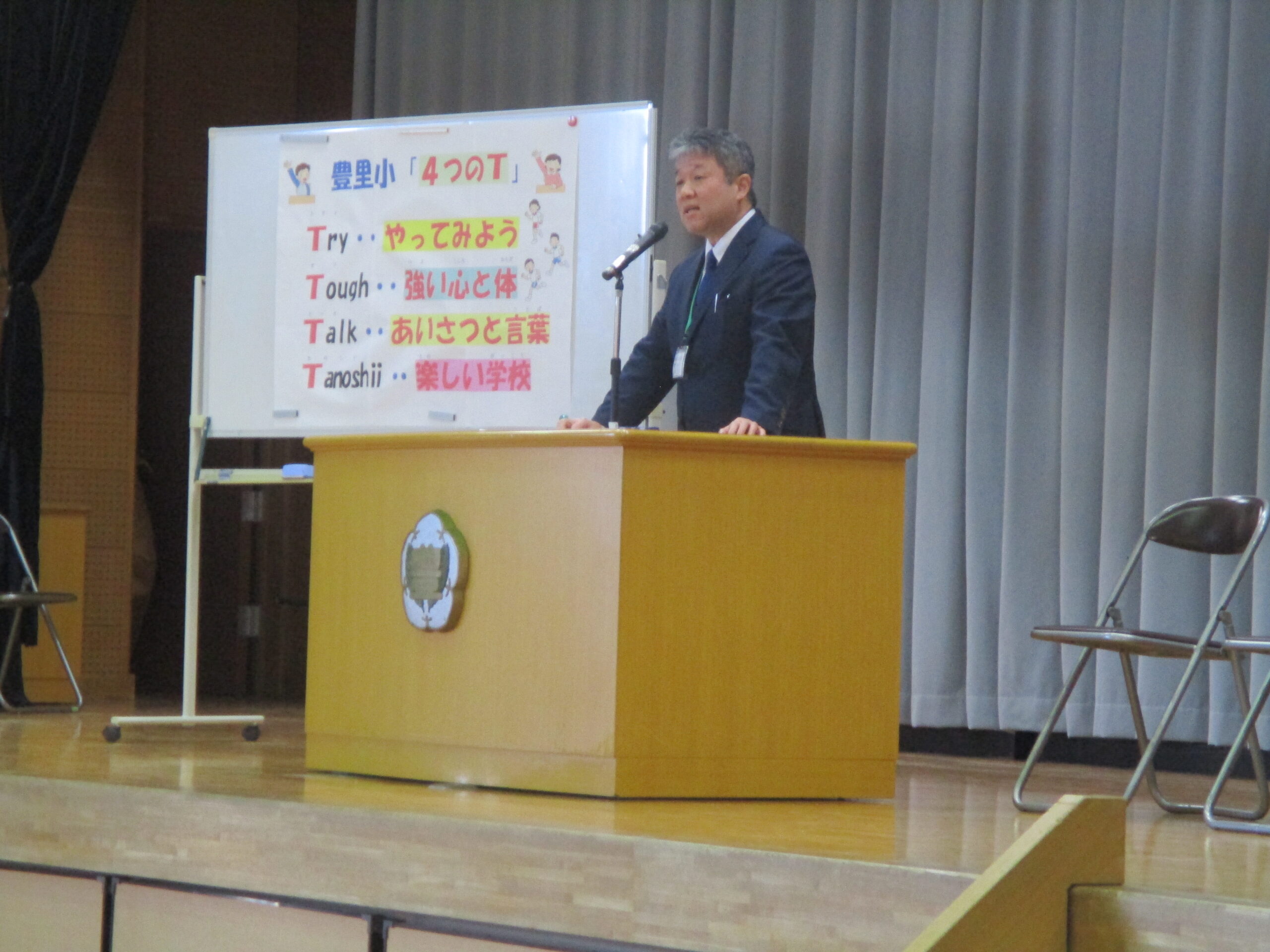 令和8年度 着任式・始業式 学校行事 2026.04.08 令和8年度が始まり、子どもたちの元気な声が豊里小学校に帰ってきました。3月30日(月)の離任式では、多くの先生とお別れしましたが、今日の着任式では、新しく6名の先生と出会いました。始業式では、校長先生からの話や担任発表を聞きました。校長先生からは大切にしてほしいこととして、4つのT(「Try」「Tough」「Talk」「Tanoshii」)について話がありました。子どもたちは真剣な表情で耳を傾けていました。気持ちを新たにする大切な時間となりました。