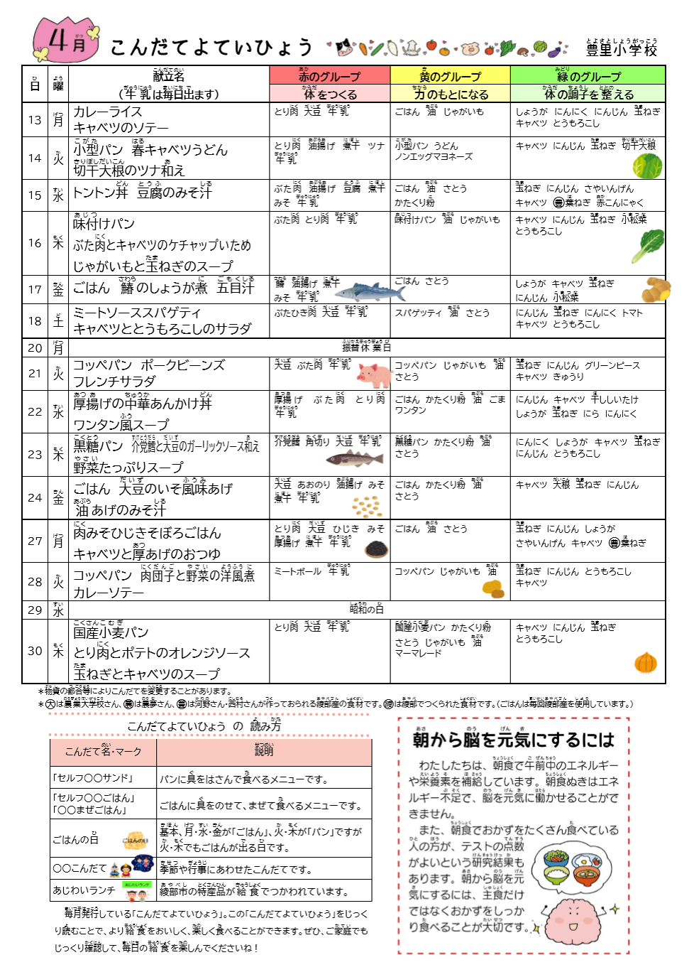 R8年度 給食献立表 4月