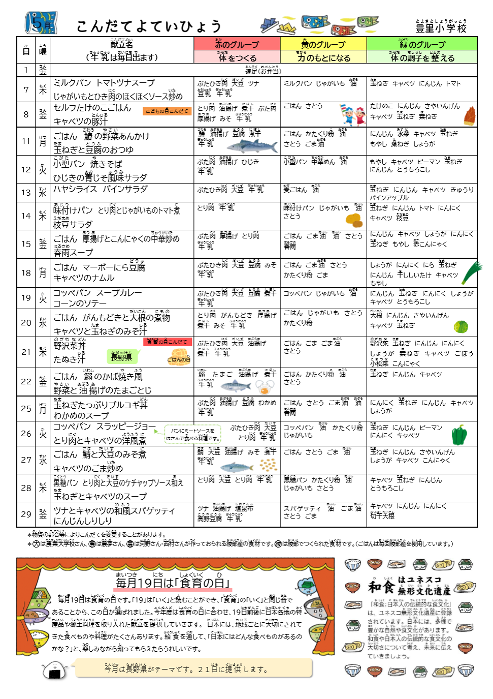 給食献立表
