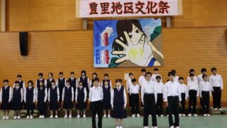 11月12日(日)に開催された豊里地区文化祭のオープニングセレモニーで合唱を披露しました。校内でボランティアを募り、当日は36名による「豊里合唱団」として「校歌」「友~旅立ちのとき~」「愛ある街で」の3曲を地域の方に聴いていただきま...