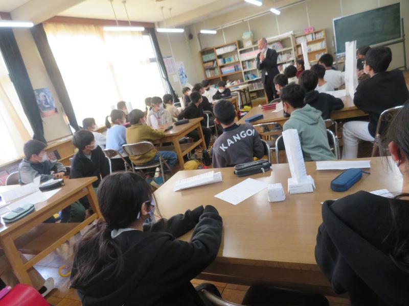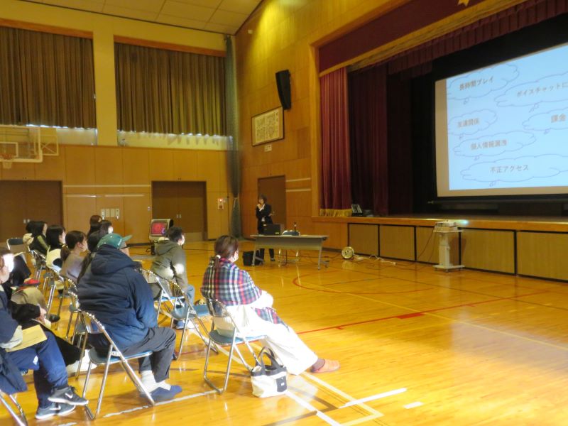 保護者対象に綾部警察署から講師を招き、非行防止教室を実施。スマートフォン・SNSのトラブル防止について、今日的なトラブル等の説明がありました。「家庭でのルールづくりが大切」というアドバイスのもと、安心安全な学びの多い中学校生活になればと願います。