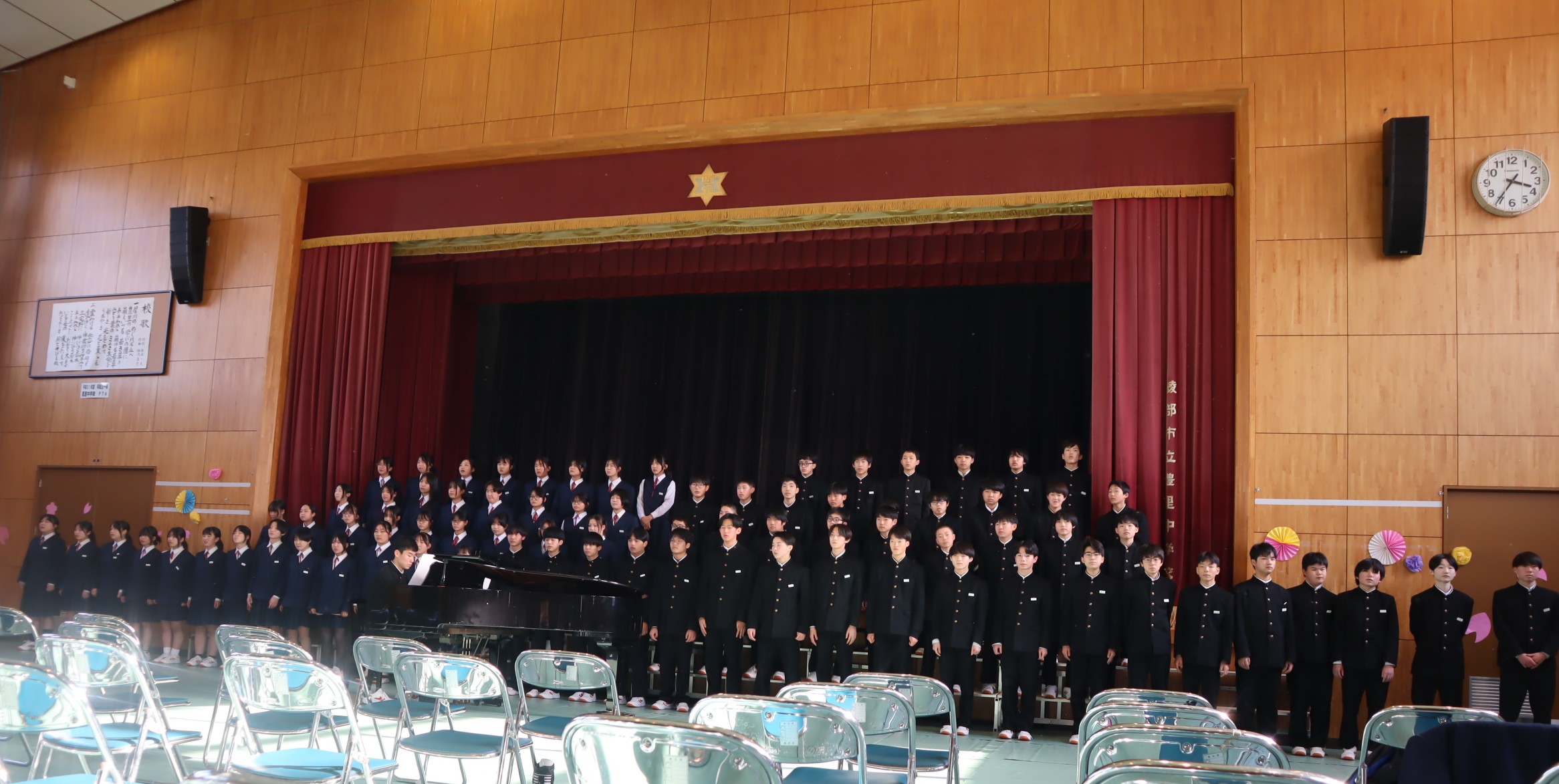 クライマックスは全校合唱、「愛ある街で」、「群衆の歌(レ・ミゼラブルより)」を歌い上げ、体育館いっぱいに温かい歌声が響きました。