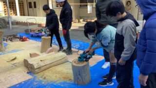 1学期、体育館のエアコンの室外機工事の関係でらくしん広場の大きなクスノキを切ることになり、子どもたちに惜しまれながら伐採をしていただきました。この間、長法寺小学校の目の前にある株式会社ダイセイの大橋さんのご協力により、伐採した後、枝を落と...
