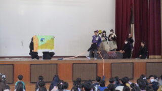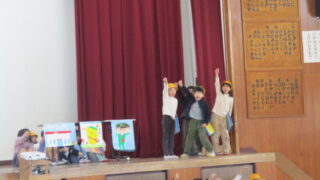 12月12日、2学期最後の全校集会がありました。前回、延期になっていた2年生の発表です。2年生が生活科の「まちたんけん」で学習した地域のお店や施設のことについて、劇やクイズを交えての発表でした。地域に出かけ、インタビューをする中でたくさん...