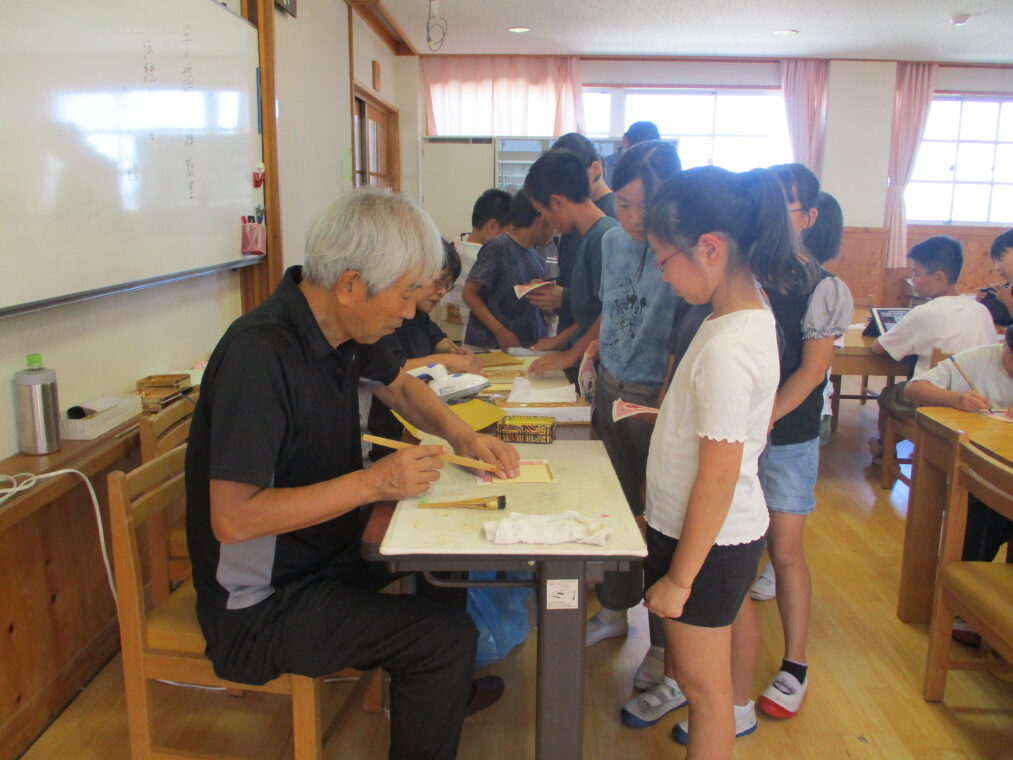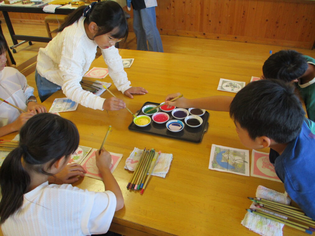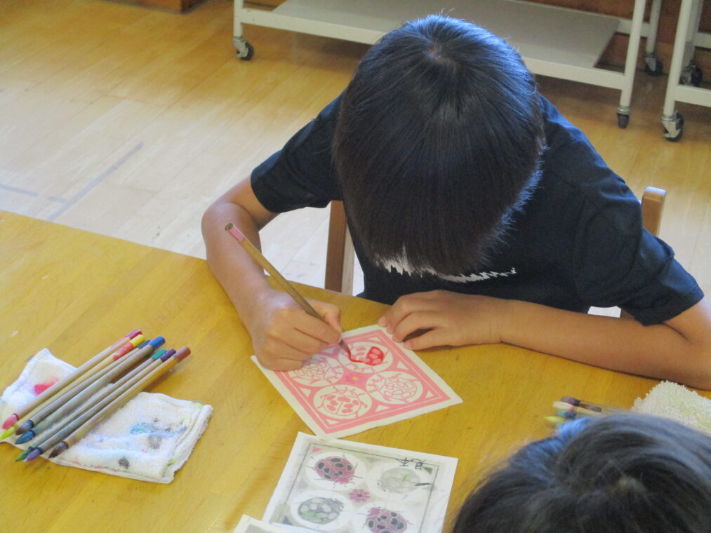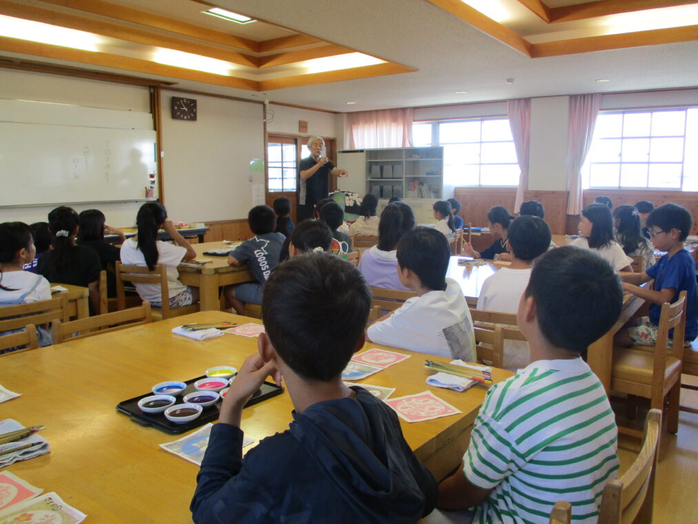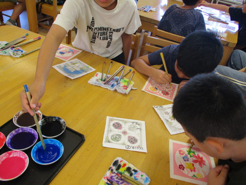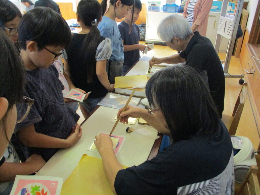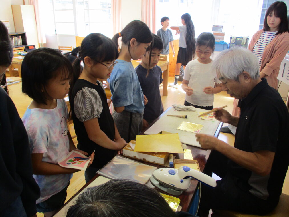 10月10日、伝統工芸士の鈴木勉さんをお招きし、4年生が友禅染体験を行いました。4年生は先日、社会見学で伝統工芸ミュージアムに行ってきたところでもあります。自分の選んだ絵柄に、筆を使って好きな色で着色していき最後には本物の金箔をつけてもらい、世界に一つだけの作品が完成しました。鈴木さんのお話を聞いたり、一つ一つ手作業で色を重ねていく作業を実際に体験したりすることで伝統工芸にさらに興味を持った人もたくさんいました。