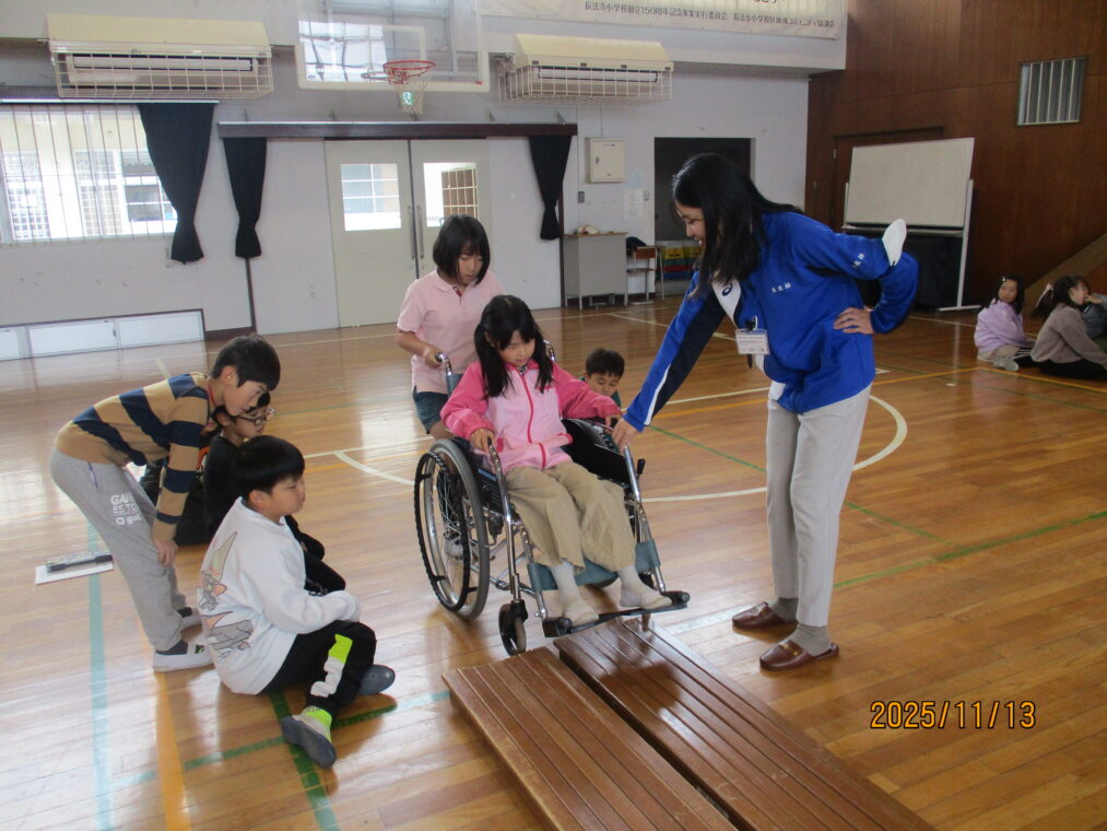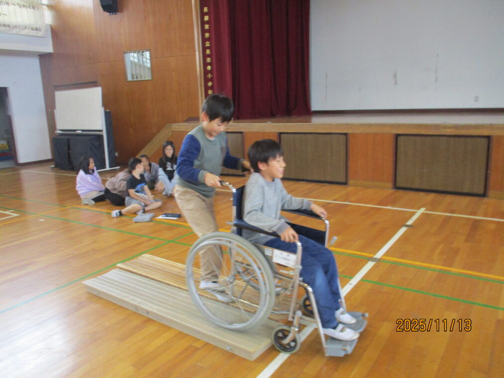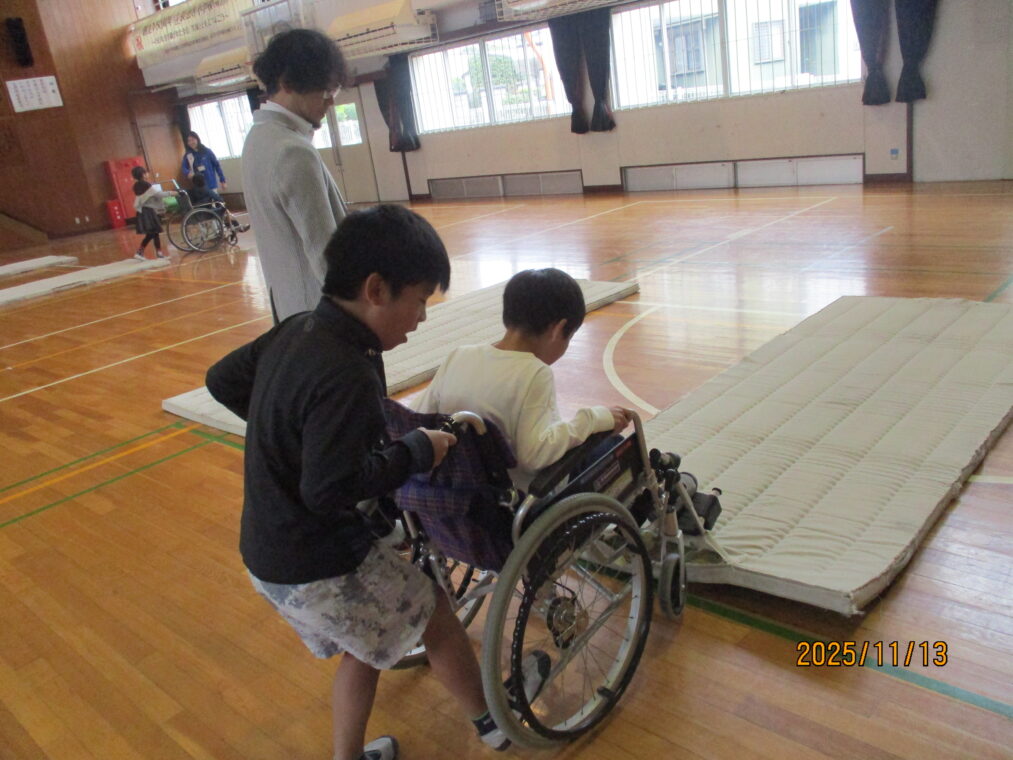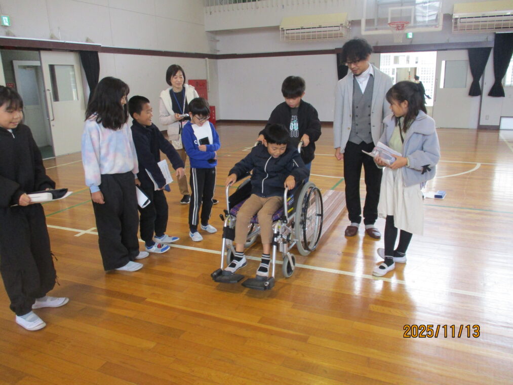 3年生は総合的な学習の時間に「福祉」をテーマとした学習をしています。まちには様々な人が暮らしているということ、みんなが幸せに暮らせるといいよね、という話から始まり、社会福祉協議会の方には福祉とは「ふ」だんの「く」らしを「し」あわせにすることだ、と教えていただきました。早速、様々な人の立場に立って考えてみよう!ということでアイマスク体験、車いす体験を行いました。体験して初めて感じることはたくさんあります。感じたことをこれからの学びにどんどんつなげていってほしいと思います。