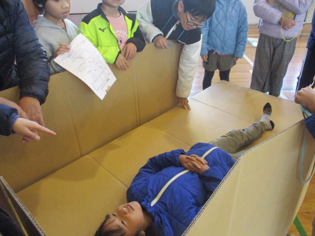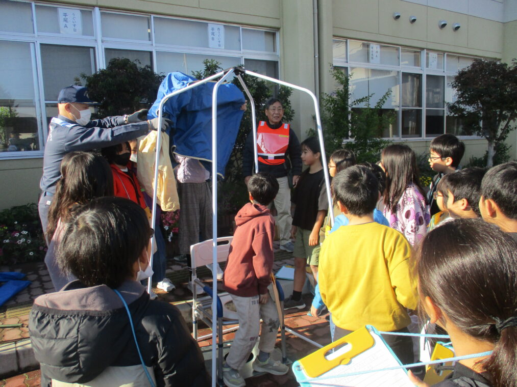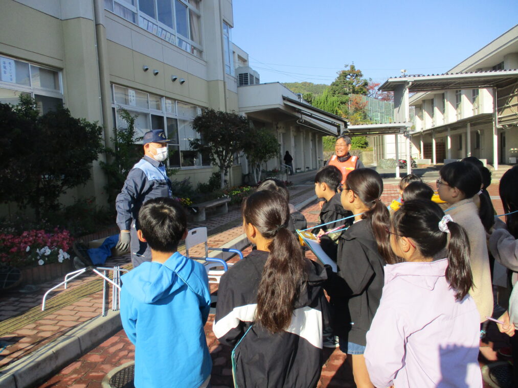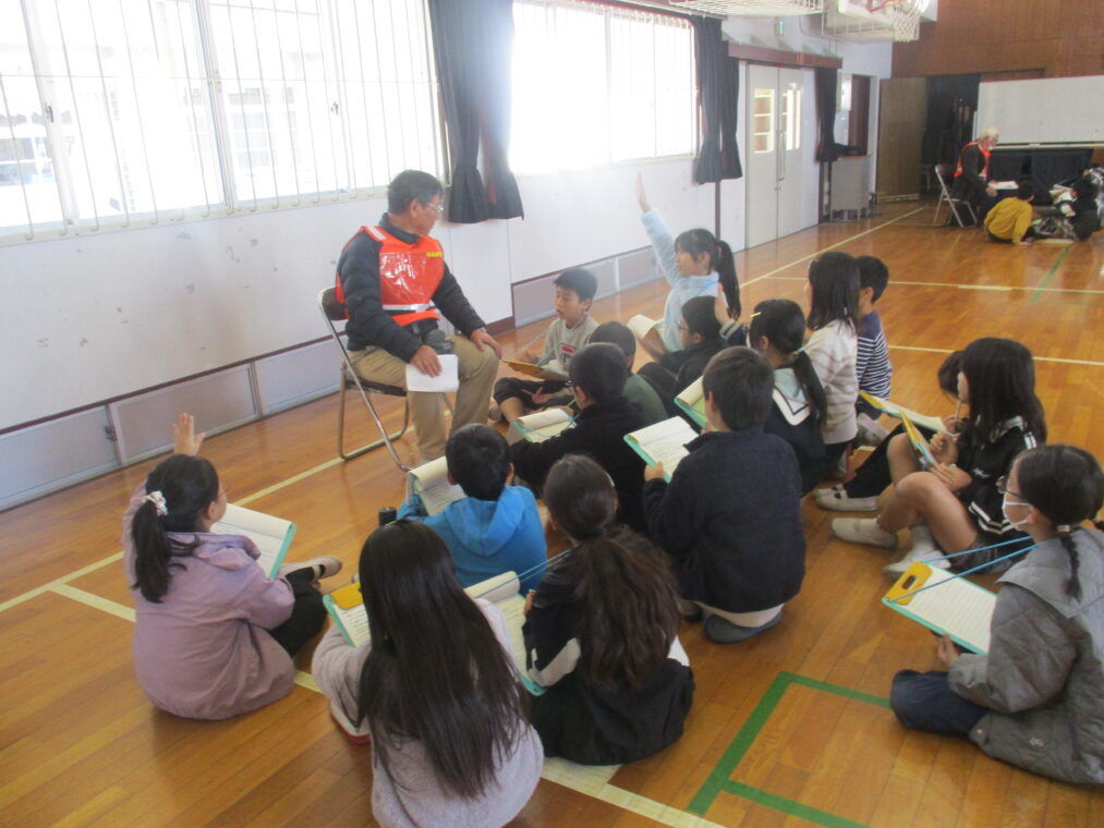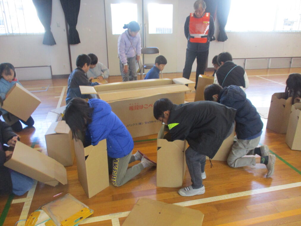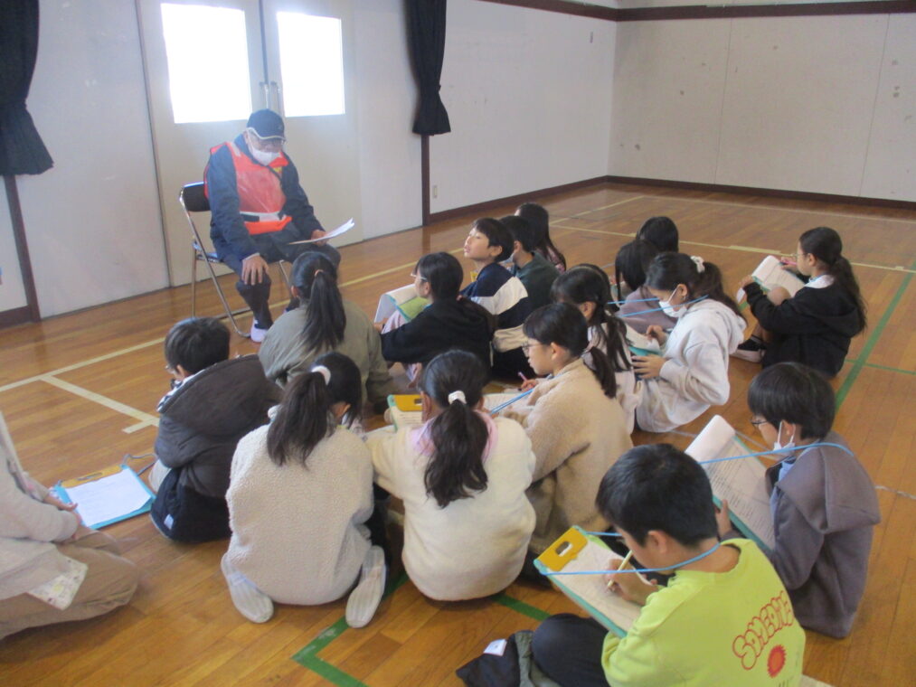 4年生は総合的な学習の時間に防災をテーマに学習をしています。災害はいつ起こるかわからないもの、とはいっても小学生の子どもたちにとってはどこか遠い話でもあります。昨日は、地域コミュニティ協議会の山下会長、清水防災部長をはじめ役員の方々、市役所の防災・安全室の方に来ていただき、地域における防災について学習しました。長法寺小学校に設置されている備蓄倉庫の中身について教えていただいたり、マンホールトイレを実際に使ってみたり、体育館でダンボールベッドを組み立ててみたり…実際に見学や体験をすることで「保存食はこの量で足りるのかな?」「マンホールトイレ、狭いなぁ」「ダンボールベッドは意外と寝心地がいい!」など、たくさんの疑問や気づきがありました。この疑問や気づきをさらにこれからの学習につなげていきます。そして、災害時に重要になることの一つに、「地域のつながり」があります。今回、実際に地域の方とたくさんのお話をしたことをきっかけに、子どもたちもこの地域に生きる一人として、さらにつながりを深めていってほしいと思います。