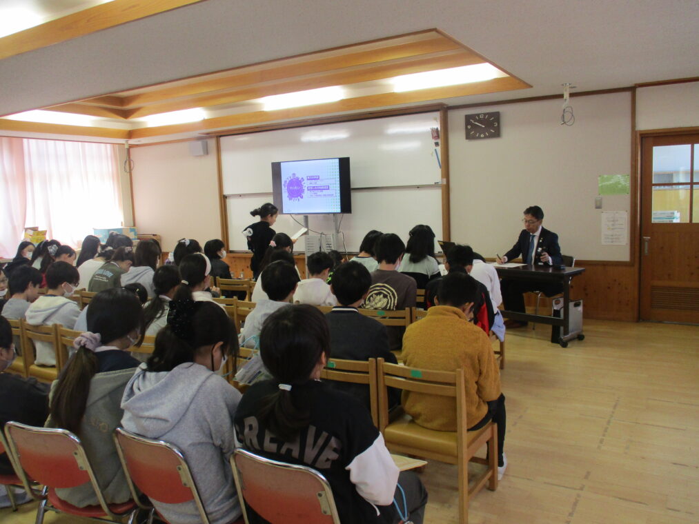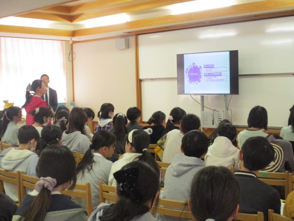 6年生は、総合的な学習の時間に「わたしたちのまち、長岡京」の学習をしています。自分たちの住む長岡京市に目を向け、良さや課題について調べたり話し合ったりしています。金曜日には長岡京市長を学校にお招きし、市政についてのお話を伺ったり質疑応答を行ったりしました。どんなビジョンで市政を行っておられるのか、市長直々にお話を聞くチャンスなんてめったにありません。みんな真剣にメモを取りながら聞いていました。また質疑応答では、自分たちの身近な「部活動の地域移行について」から「子育て支援について」など、様々な視点からの質問が途切れずに続きました。全てに丁寧に答えていただき、「実際に市長さんから話を聞くことでよくわかった!」という声がありました。今回の学びをこれからの学習にどうつなげていくのか、楽しみです!
