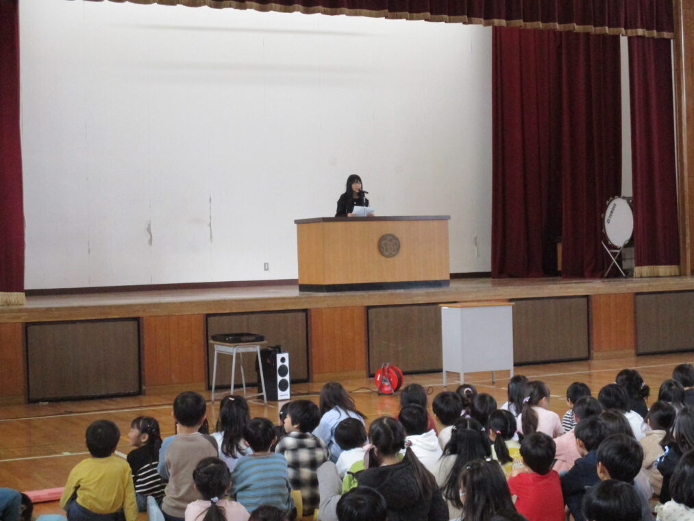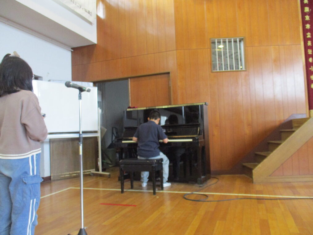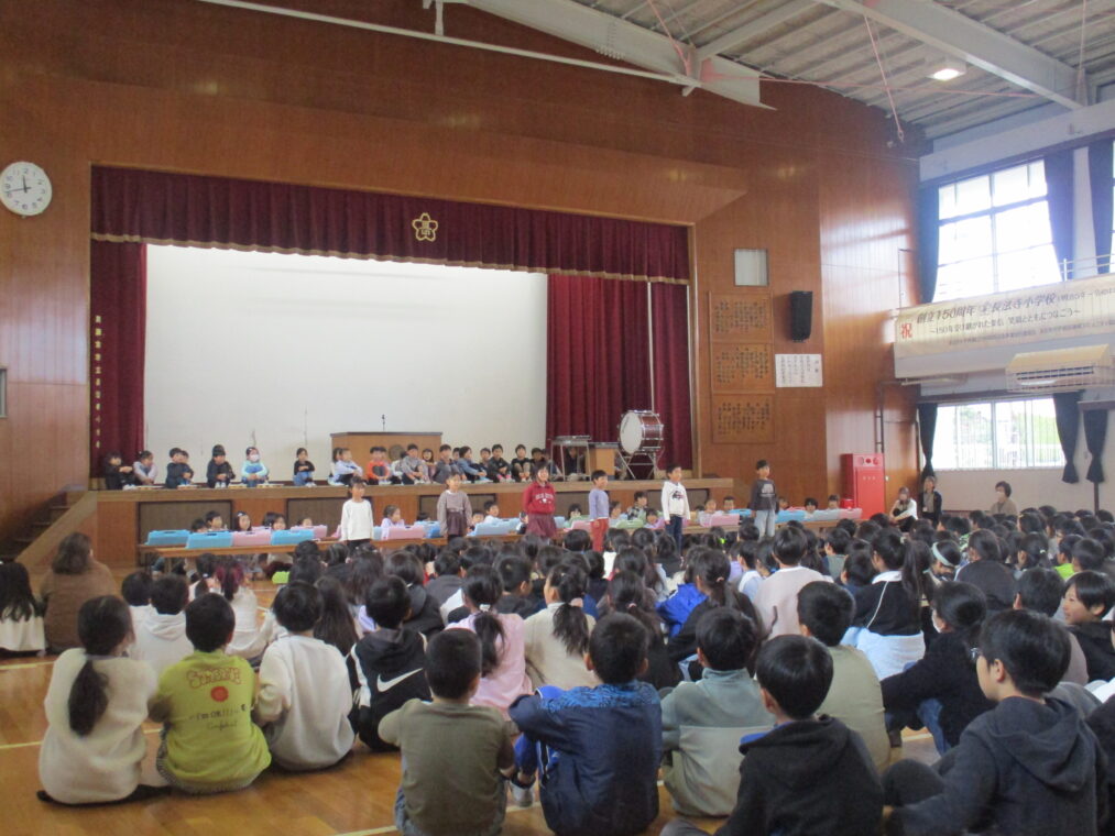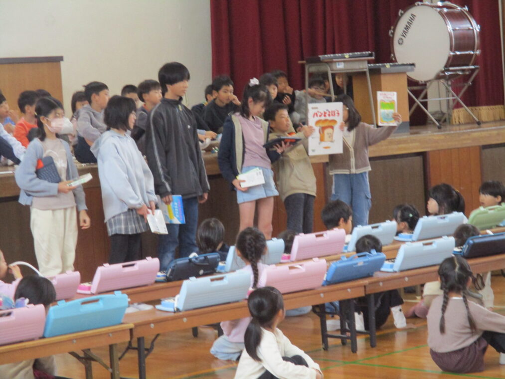 金曜日に全校集会を行いました。1年生の学年発表は、歌と、けんばんハーモニカや打楽器の合奏でした。1年生は集会での発表は初めてでしたが、元気よく発表することができました。全校みんなと、参観に来られたおうちの方の前でとても張り切っていました!2年生の発表は12月12日に延期です。楽しみにしています。