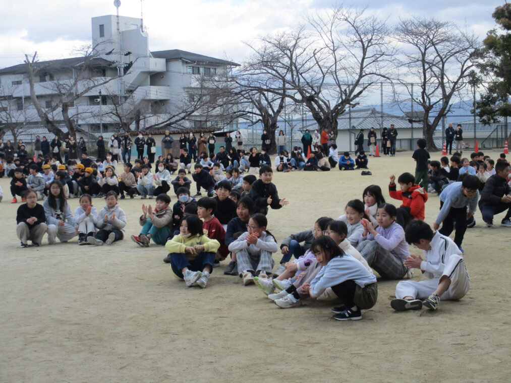 1月21日(水)児童会行事の大縄大会を開催しました。約3週間ほど、各クラス2チームに分かれ、みんなで決めた目標回数に向かって、練習に励んできました。本番では、大勢の保護者の方が見守る中、顔を真っ赤にしながら、どの学年も一生懸命跳んだり、声を掛け合ったりして目標に向かってがんばりました。特に高学年は、縄を回すスピードが速く連続で跳ぶ姿がかっこよく、見とれるほどでした。結果発表では、全校の目標合計3750回を超え、喜びの歓声が上がりました。寒い中、多くのご参観、ありがとうございました。まだまだ寒さが続きますが、体を動かし、元気に遊んでほしいと願っています。