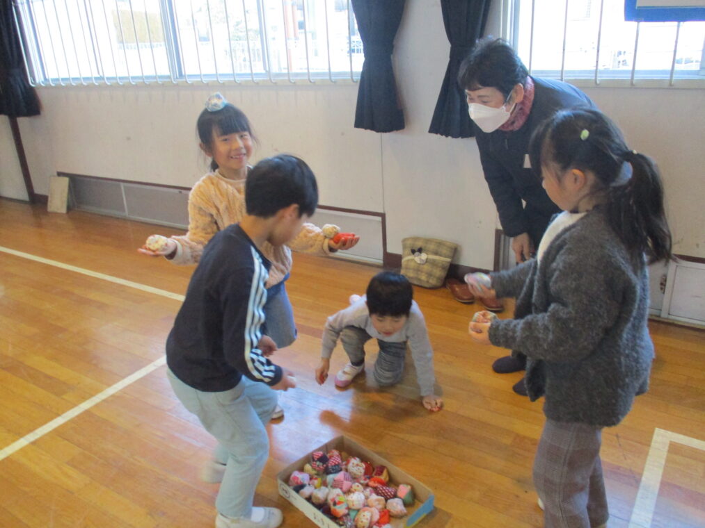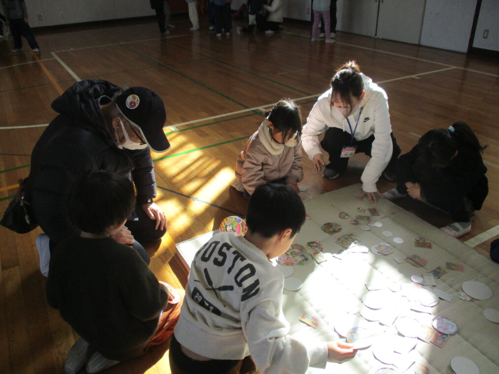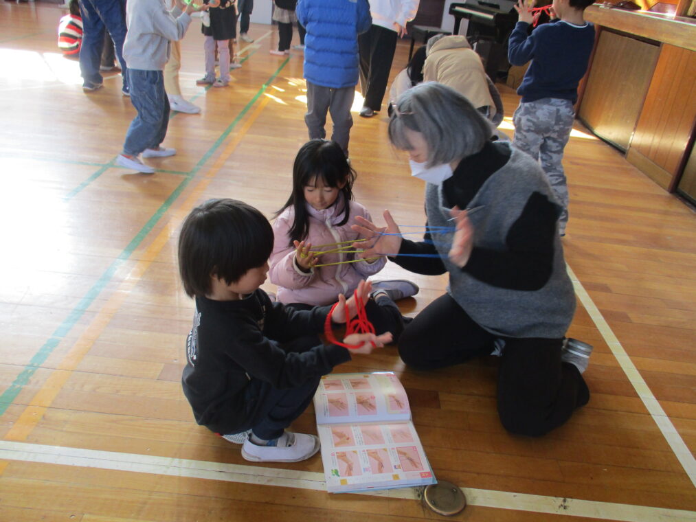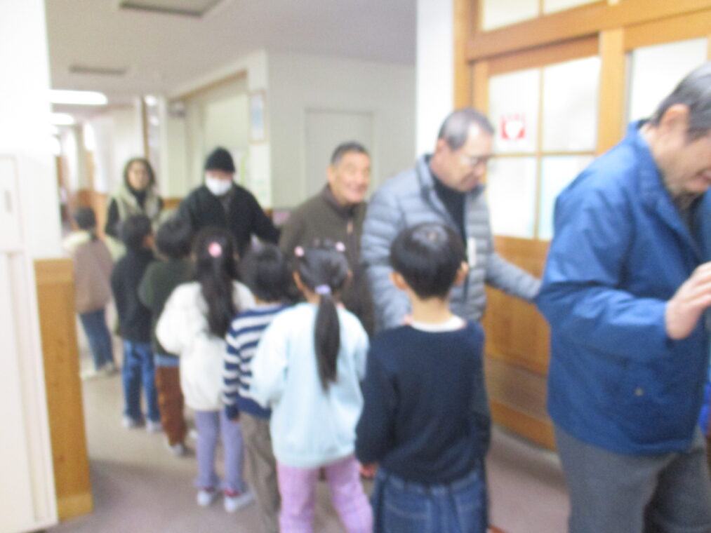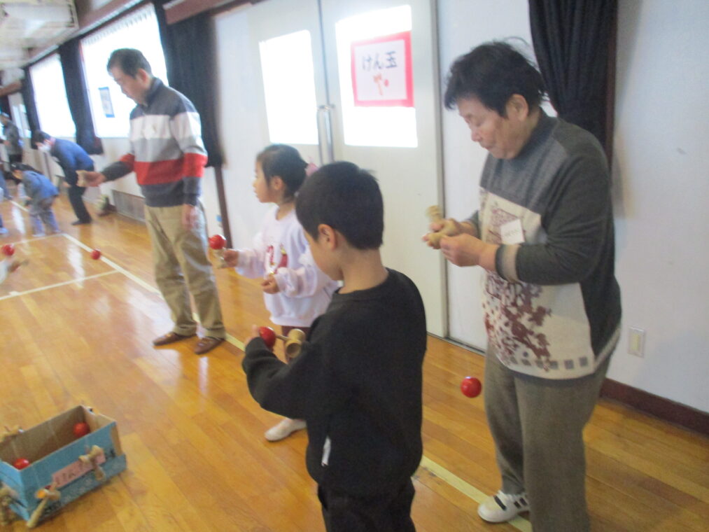 1年生生活科「昔から伝わるあそびを楽しもう」という学習で、昔の遊びをよく知る地域の方々をお招きして交流しました。こままわしやけん玉、あやとりなどでは、子どもたちから「見て!見て!」とできる技を見せ褒めていただいたり、新しい技を教えてもらったりして、とてもうれしそうでした。近年では中々身近にない「めんこ」「羽子板」「お手玉」のコーナーもあり、子どもたちにとっては貴重な体験ができました。とても寒い日でしたが、23人もの地域の方々にご参加いただき、「子供たち元気やなあ。楽しかったです!」「パワーもらいました」とおっしゃってくださり、子どもたちも名残惜しそうな様子でした。心温まる交流ができたことに感謝です。ぜひ、次年度も多くのご参加をお待ちしています!