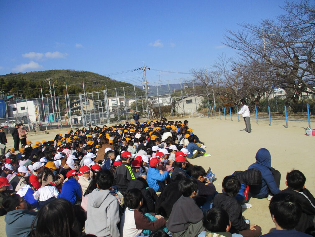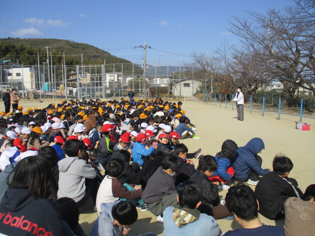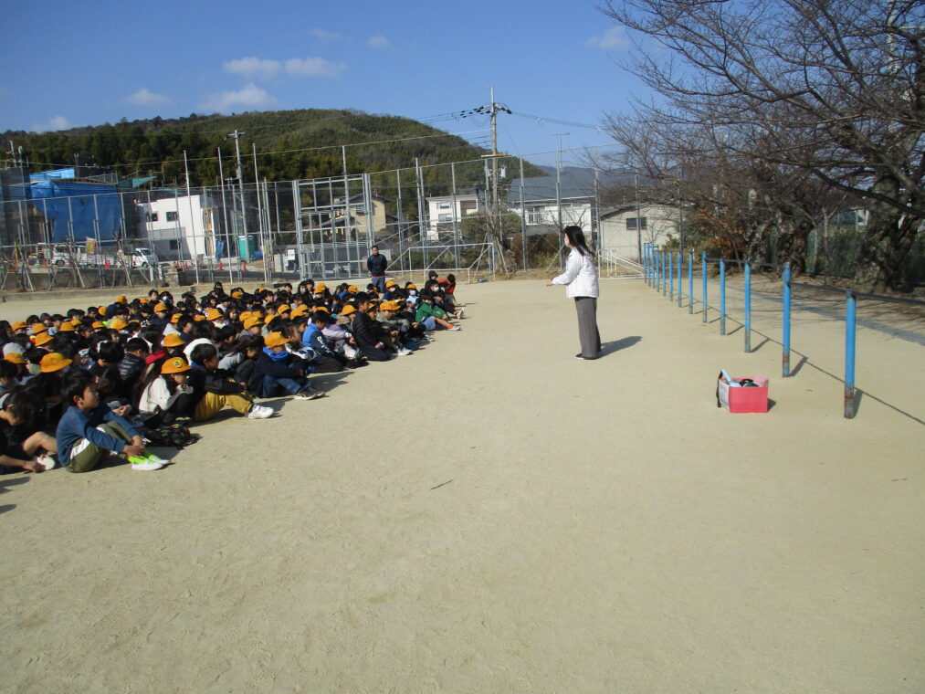 2月2日、避難訓練を実施しました。中間休みに地震が発生し、理科室の火災につながったという想定です。子どもたちには「今週のどこかで避難訓練がある」ということのみ伝えて、いつ実施するかはわからない状況での訓練でした。放送が鳴った瞬間、教室で過ごしていた人も運動場で遊んでいた人も放送をしっかり聞き、指示に従って素早く避難をすることができました。運動場に避難してからは、不明児童がいたという想定で教職員が役割分担をして捜索するという訓練も同時に行いました。何事も、日頃からの備えをしっかりしておくことが大切だと改めて感じました。