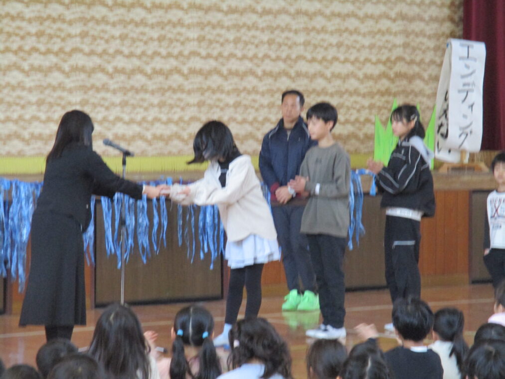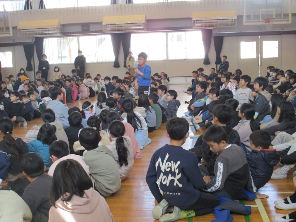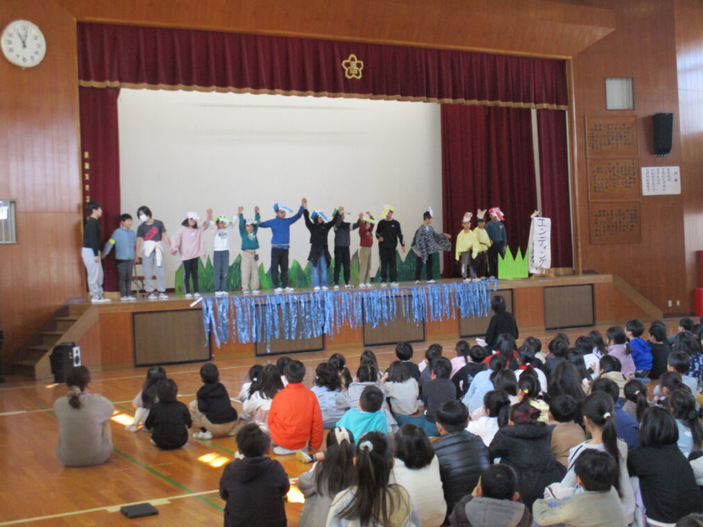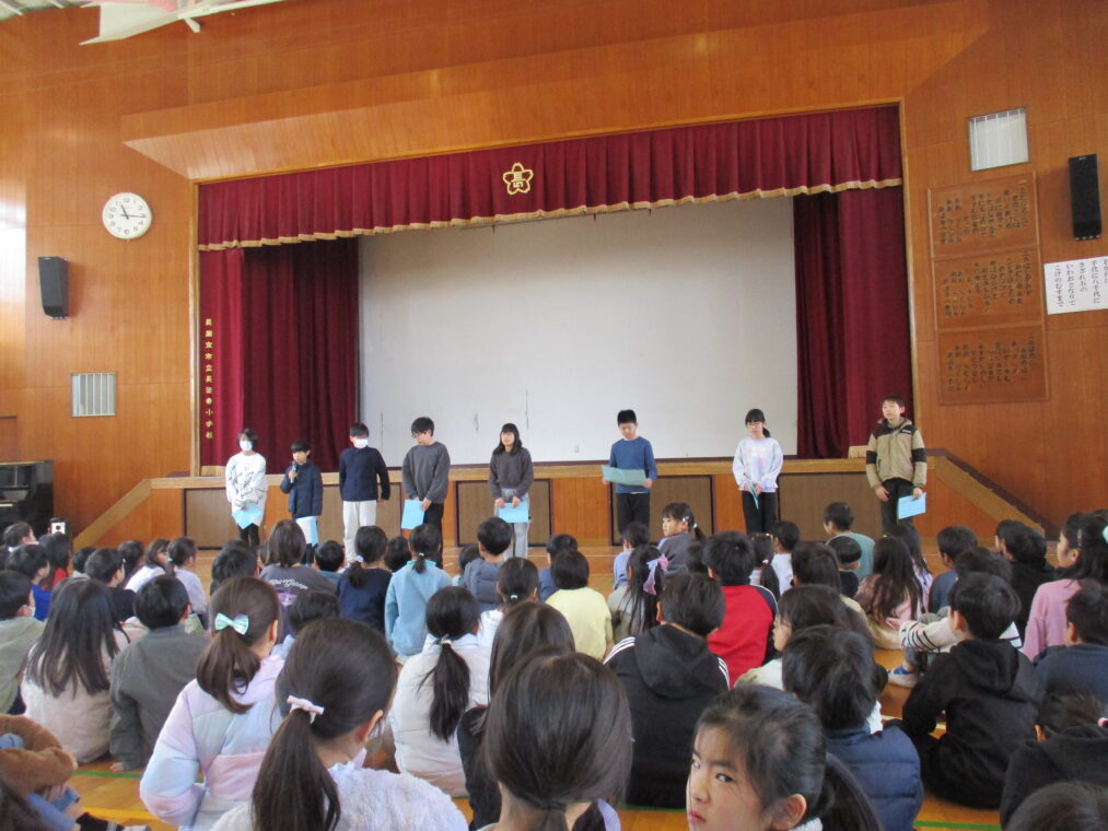 TOPICS2月4日、全校集会を行いました。今日は、たんぽぽ学級の劇の発表がありました。来週の長中校区で実施される「卒業を祝う会」で発表する劇「言えない言えない」を、校内で発表するものです。12月から練習を重ねてきました。全校の前で台詞を言うのはとても緊張したと思いますが、みんな緊張に負けず、それぞれの役割で堂々とした演技を披露しました!終わってから、「緊張した~!」と言いながらもにっこり笑顔の子どもたち。たくさんの人から感想を伝えてもらい、自信になったと思います。来週の本番でもがんばってほしいです!