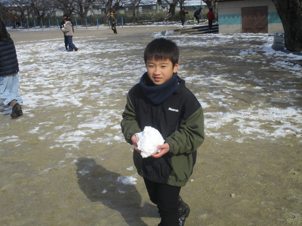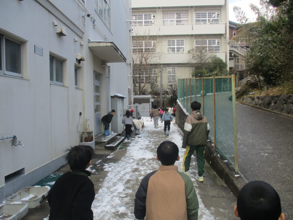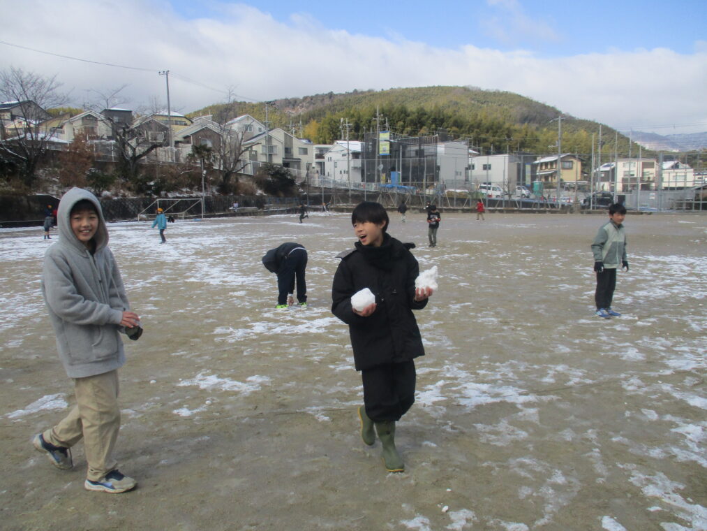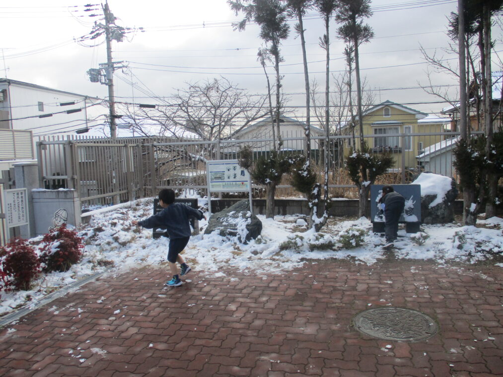 今シーズン何度目かの寒波が到来し、昨日から子どもたちも大喜びの雪が積もりました。登校した子どもたちは早速外に出て、真っ白な運動場で雪だるまを作ったり雪合戦をしたり、雪をかけ合って遊んだり…とても楽しそうな様子でした。中間休みには少しずつ溶けてきていましたが、それでも残った雪を集め、十分に遊び、楽しんだ子どもたちでした。もう一回くらい、雪が積もる日があることを期待しています!(大人は困るんですけどね!)