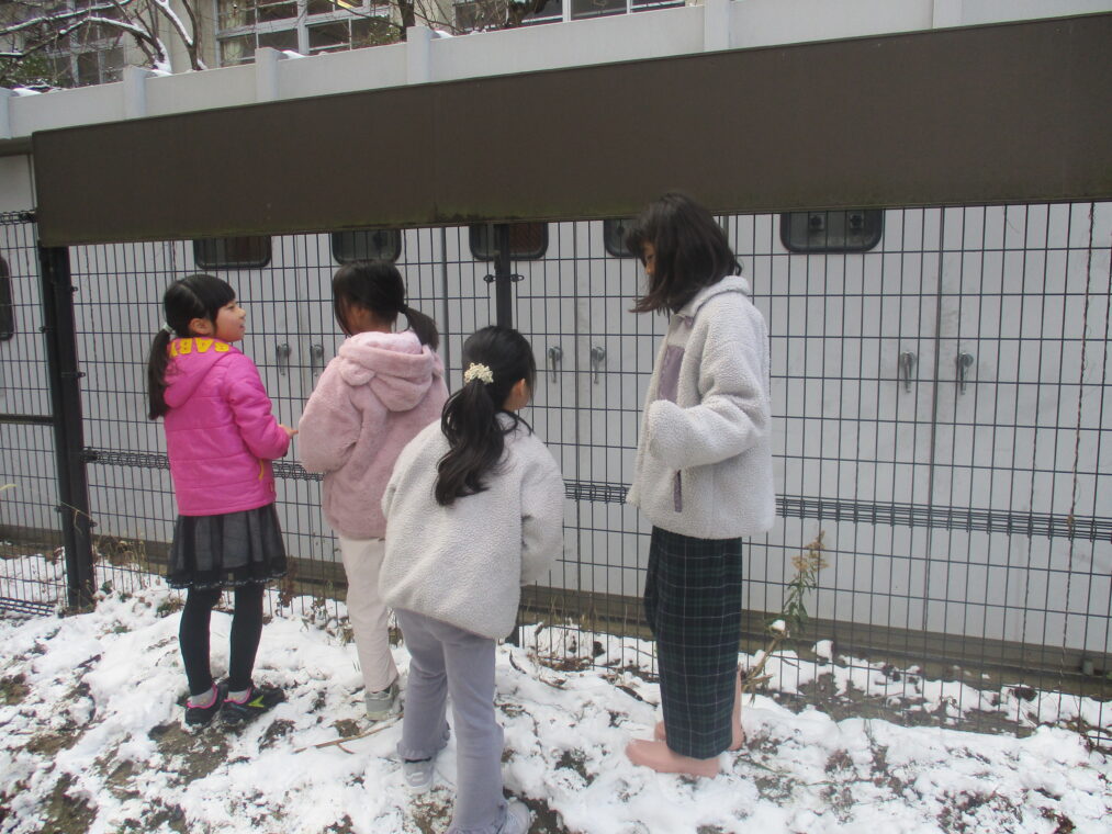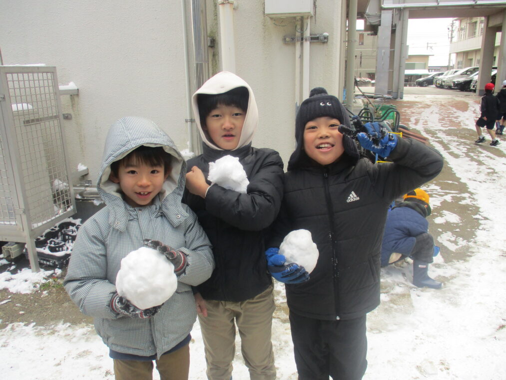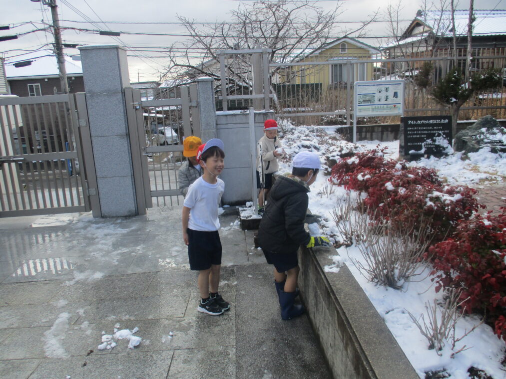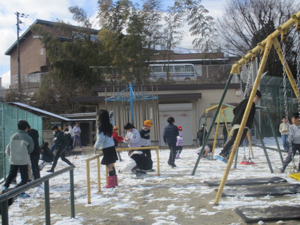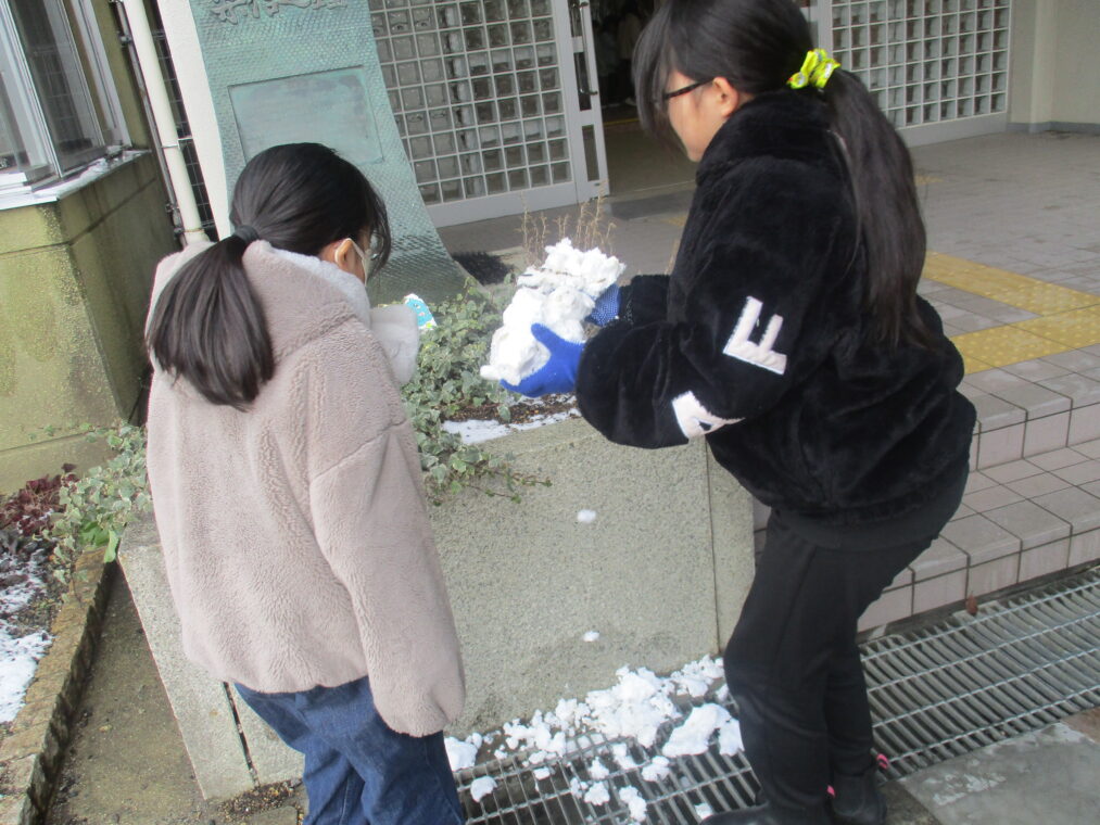 今シーズン何度目かの寒波が到来し、昨日から子どもたちも大喜びの雪が積もりました。登校した子どもたちは早速外に出て、真っ白な運動場で雪だるまを作ったり雪合戦をしたり、雪をかけ合って遊んだり…とても楽しそうな様子でした。中間休みには少しずつ溶けてきていましたが、それでも残った雪を集め、十分に遊び、楽しんだ子どもたちでした。もう一回くらい、雪が積もる日があることを期待しています!(大人は困るんですけどね!)