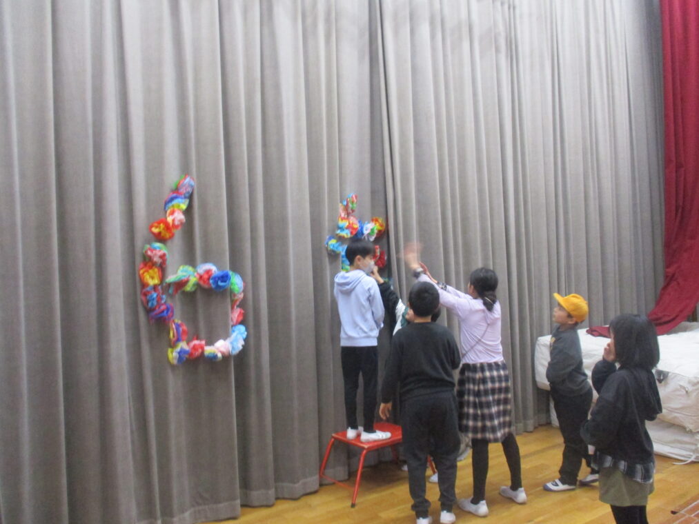 明日は6年生を送る会です。5年生が中心になって、これまで準備を進めてきました。学年発表の練習だけでなく、新聞作成、メッセージカード、プレゼント、プログラム、会場飾りなど、各学年がそれぞれ6年生のために準備を重ねてきました。6年生の心に残る送る会になりますように!