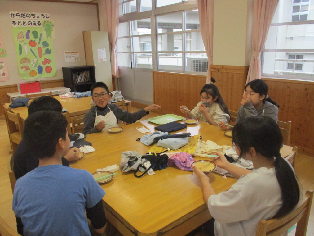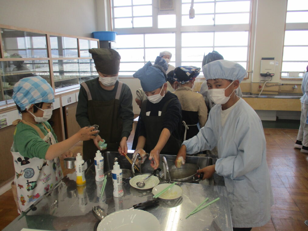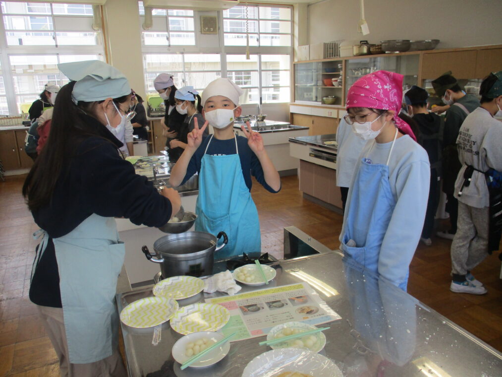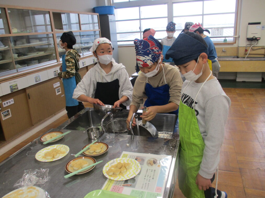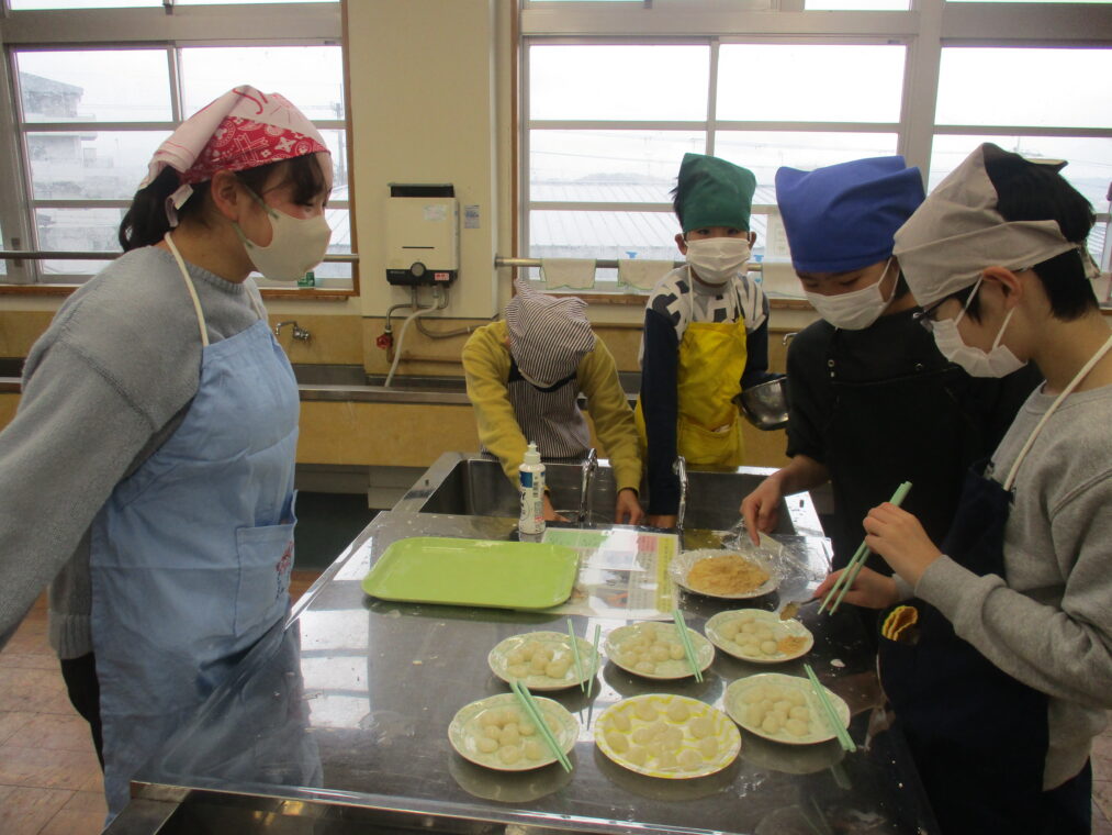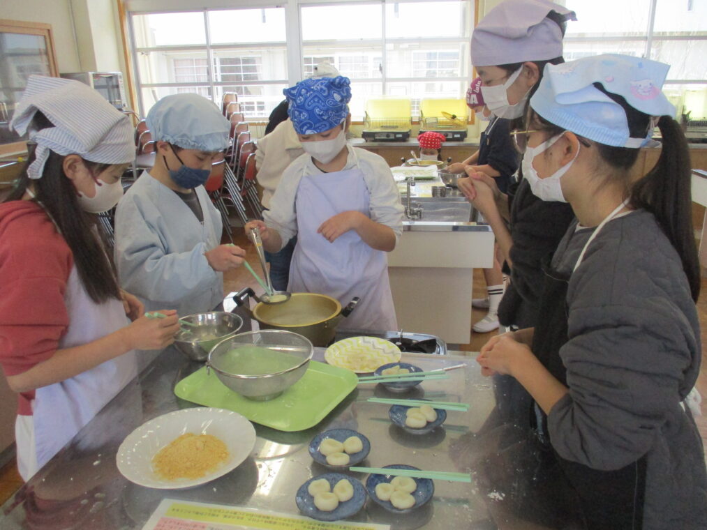 先週、5年生が家庭科で調理実習を行いました。「ほっとタイム」という単元で、団らんの計画を立て、その一つとして「白玉団子」を作るというものでした。班で協力して、道具を準備し手際よく粉と水を混ぜて団子を作っていきました。団子の丸め方には個性が出て、小さな丸い形からハート形、字の形、星形など様々な形を作ることを楽しんでいました。みんなで何かを作ったり、おいしい物を囲んでの団らんは話が弾みますね!