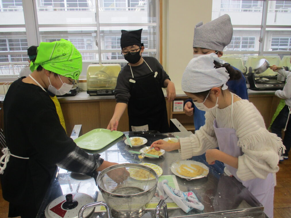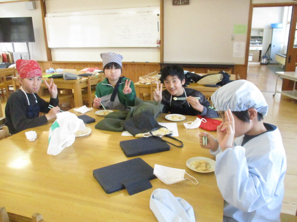 TOPICS先週、5年生が家庭科で調理実習を行いました。「ほっとタイム」という単元で、団らんの計画を立て、その一つとして「白玉団子」を作るというものでした。班で協力して、道具を準備し手際よく粉と水を混ぜて団子を作っていきました。団子の丸め方には個性が出て、小さな丸い形からハート形、字の形、星形など様々な形を作ることを楽しんでいました。みんなで何かを作ったり、おいしい物を囲んでの団らんは話が弾みますね!