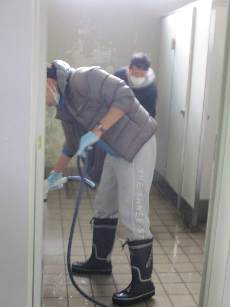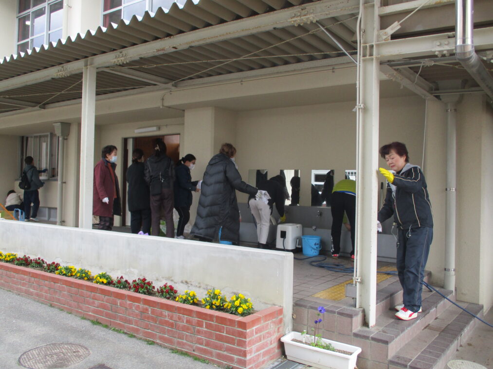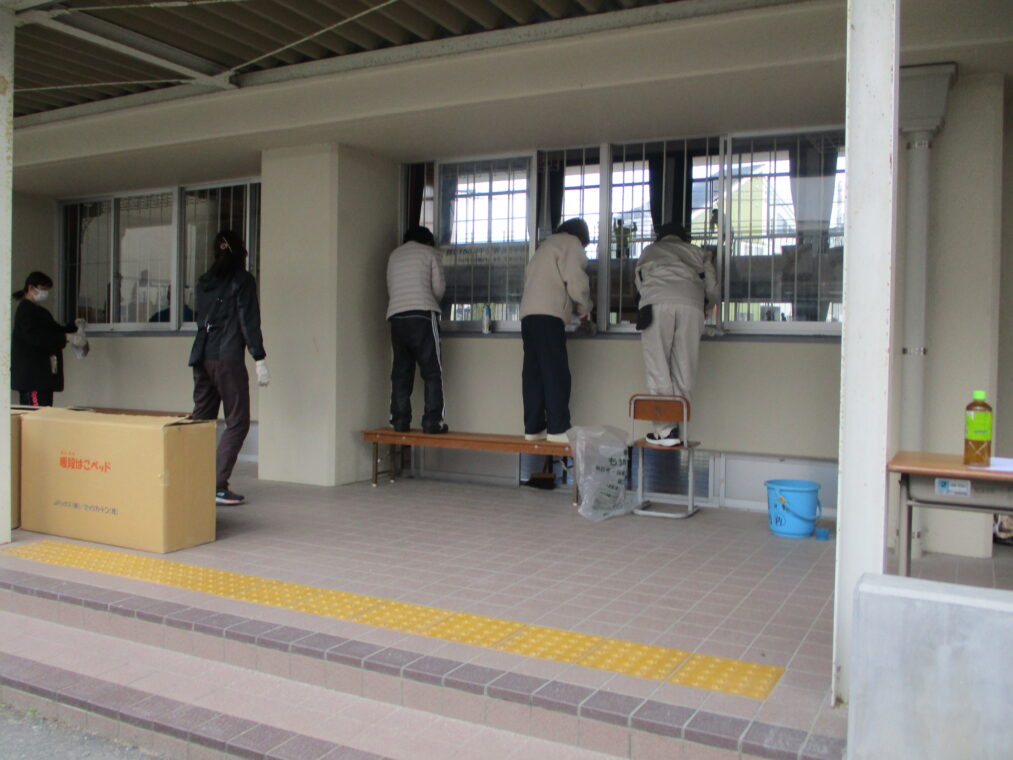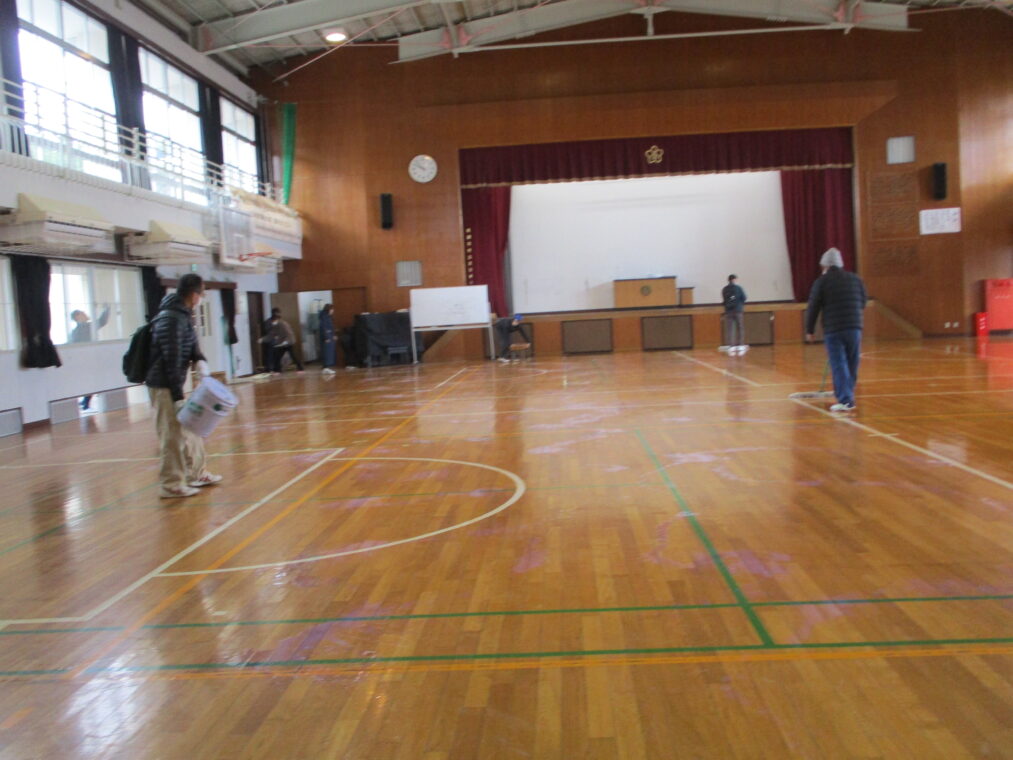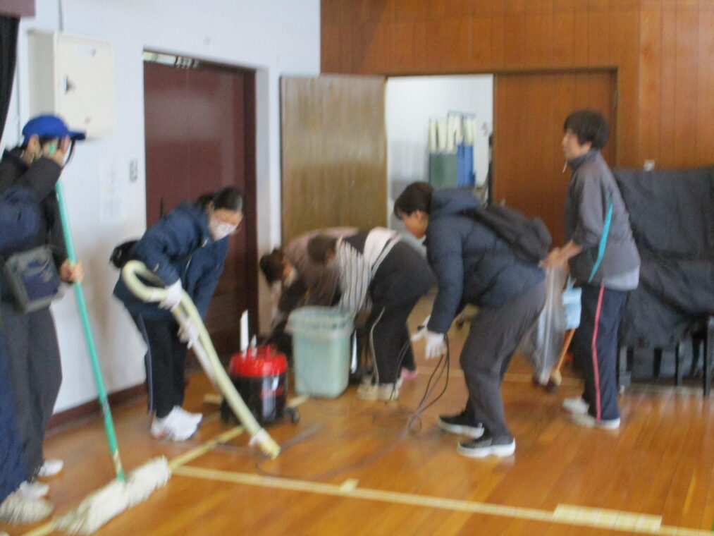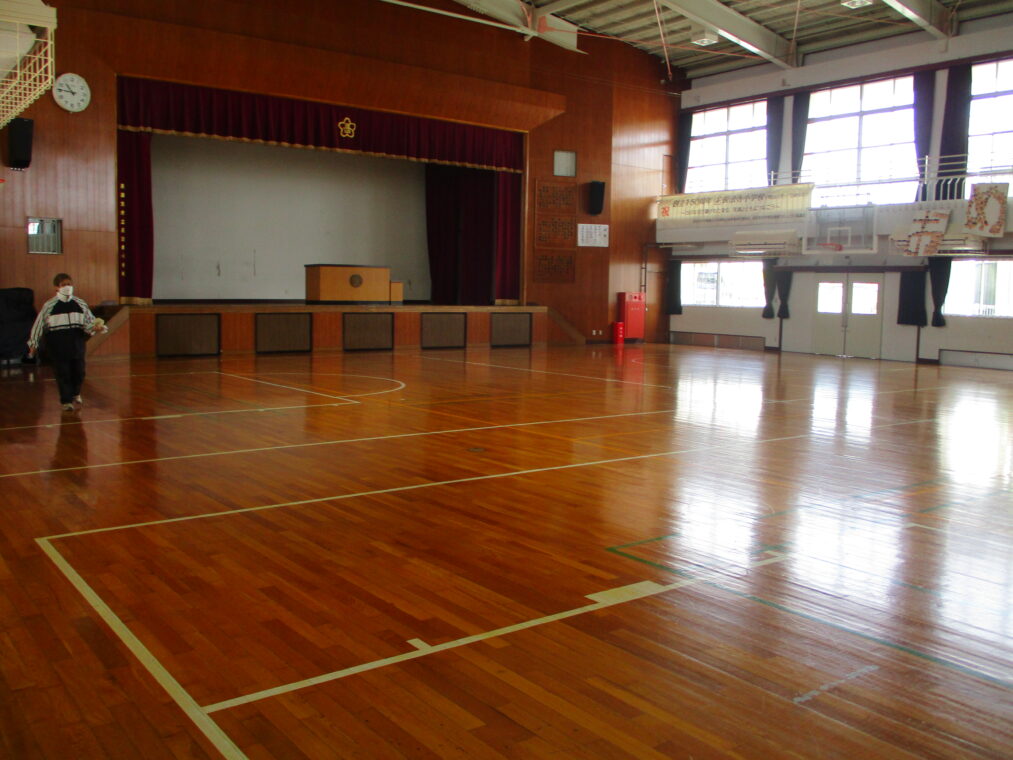 3月8日にグッド楽クラブの方々をはじめ、学校開放で使用されている各団体の皆さんが、朝早くから大勢集まり、体育館の清掃及びワックスがけをしてくださいました。二階の高い窓、窓のさん(桟)、体育倉庫、舞台横、トイレの換気扇など、日ごろの掃除ではできない部分を、隅々までピカピカにしていただきました。本当にありがとうございました。とても清々しくなった体育館で、いよいよ来週からは卒業に向けての練習や準備が始まります。