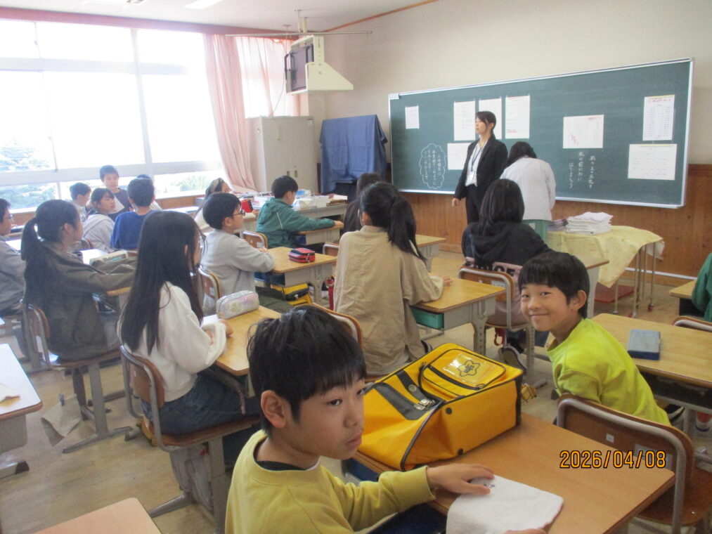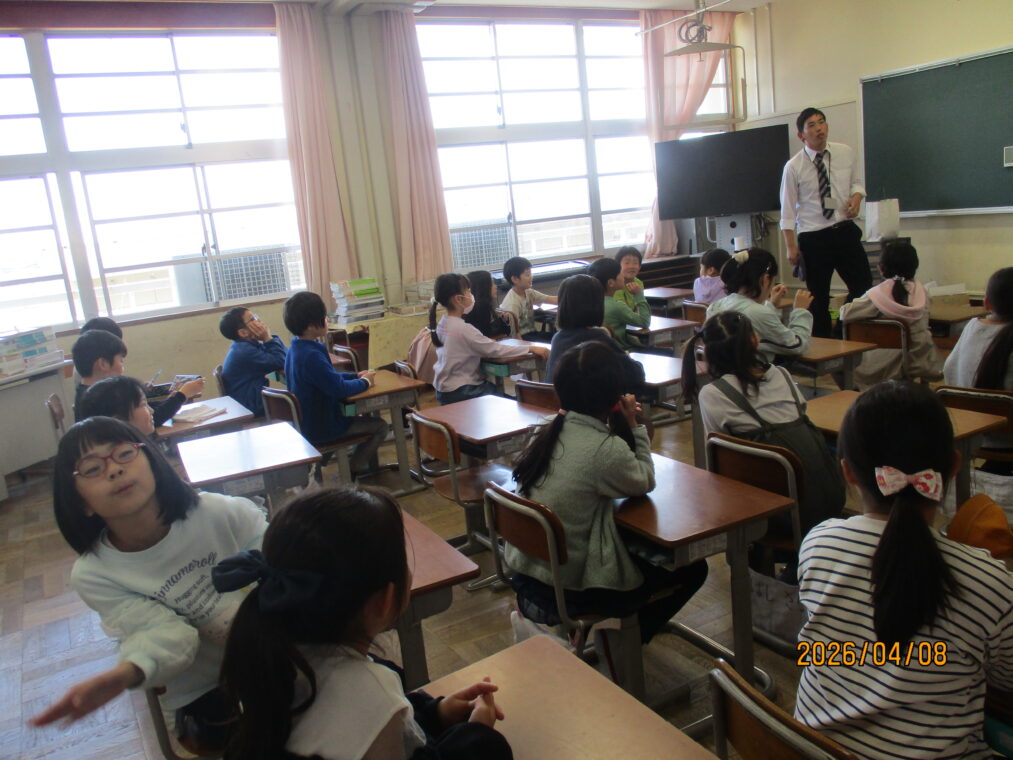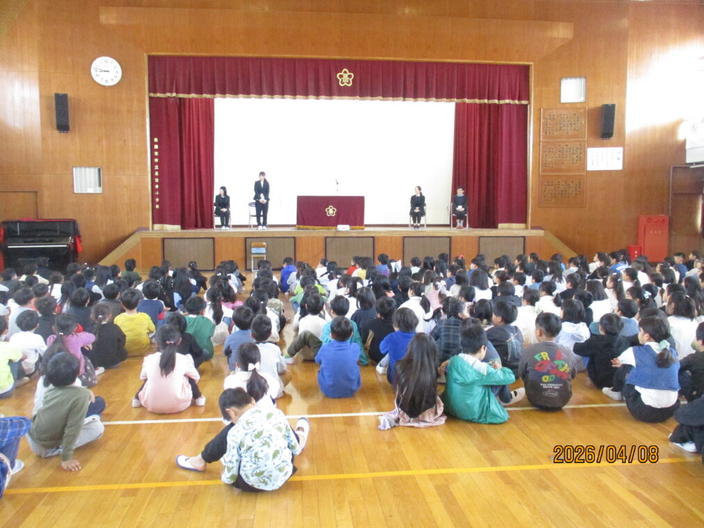 令和8年度が始まりました。春休みを過ごした子どもたちは、本日、元気いっぱいに登校してきました。新しい学級、新しい先生にドキドキそわそわしながら今日を迎えたことでしょうね。着任式では、新しく来られた4名の先生方の紹介がありました。始業式では担任の先生の発表があり、さっそく新しい学級での生活が始まりました。全校383名と先生たちで「楽しく 信じ合う」学校を目指し、今日から頑張っていきます。