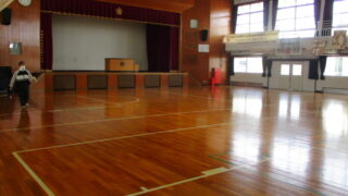 3月8日にグッド楽クラブの方々をはじめ、学校開放で使用されている各団体の皆さんが、朝早くから大勢集まり、体育館の清掃及びワックスがけをしてくださいました。二階の高い窓、窓のさん(桟)、体育倉庫、舞台横、トイレの換気扇など、日ごろの掃除では...