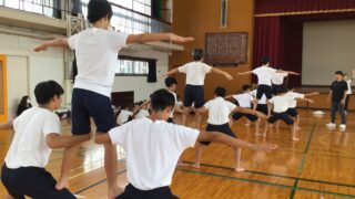 03.学校行事(中央タイムズ) 3.4年 運動会に向けて① 中学年は『南中ソーラン』に挑戦します。パワフルな中学年にはピッタリの演目です。 腰を落として踊りきることは至難の技です。はじめての練習では腰を落とすだけで精一杯…。 指先や目線まで意識した演技を目指します。 2025.10.08 03.学校行事(中央タイムズ)