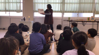 1~3年生を対象にやわたお話の会にきていただき、「お話の会」を行いました。