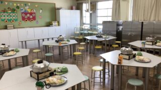 5−1が24日(火)5−2が今日26日(木)に鍋給食をしました!5年生だけの特別な給食です!お家やお店で食べるように本当にコンロで鍋を炊くので、教師が各テーブルについてやけどしないように注意して実施しました!お友だちとおしゃべりをしながら...