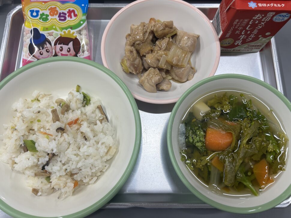 05.給食だより今日は3月3日桃の節句!ひなまつりです!ひなまつりは女の子の健やかな成長と幸せを願う日本の伝統行事です。今日はひなまつりのお祝いとして、ちらし寿司とひなあられがつきました!あと、すまし汁に菜の花を入れて春っぽく仕上げました!最近少しずつ暖かくなってきて春が近づいてきているような気持ちになりますね🍀ちらし寿司とても美味しかったですね☺️