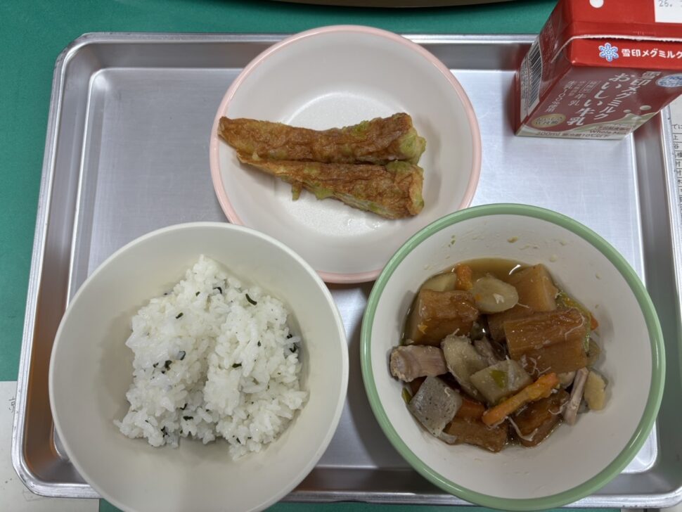 投稿が大変遅くなりましたが3月16日月曜日は6年生がたてた献立最終回になりました!献立はわかめごはん、筑前煮、ちくわの磯辺揚げ、牛乳でした。今和食離れが進んでいると言われているなか和食のいい献立を考えてくれました!これから中学生になられたらきっと自分たちだけで料理を作ったり、食べに行ったりという機会が出てくると思いますが、そういった時に少しでも家庭科で学んだ栄養のことや食のことを思い出してもらえればうれしいなと思っています!6年生がたてた献立どの献立もとても美味しく人気でした!