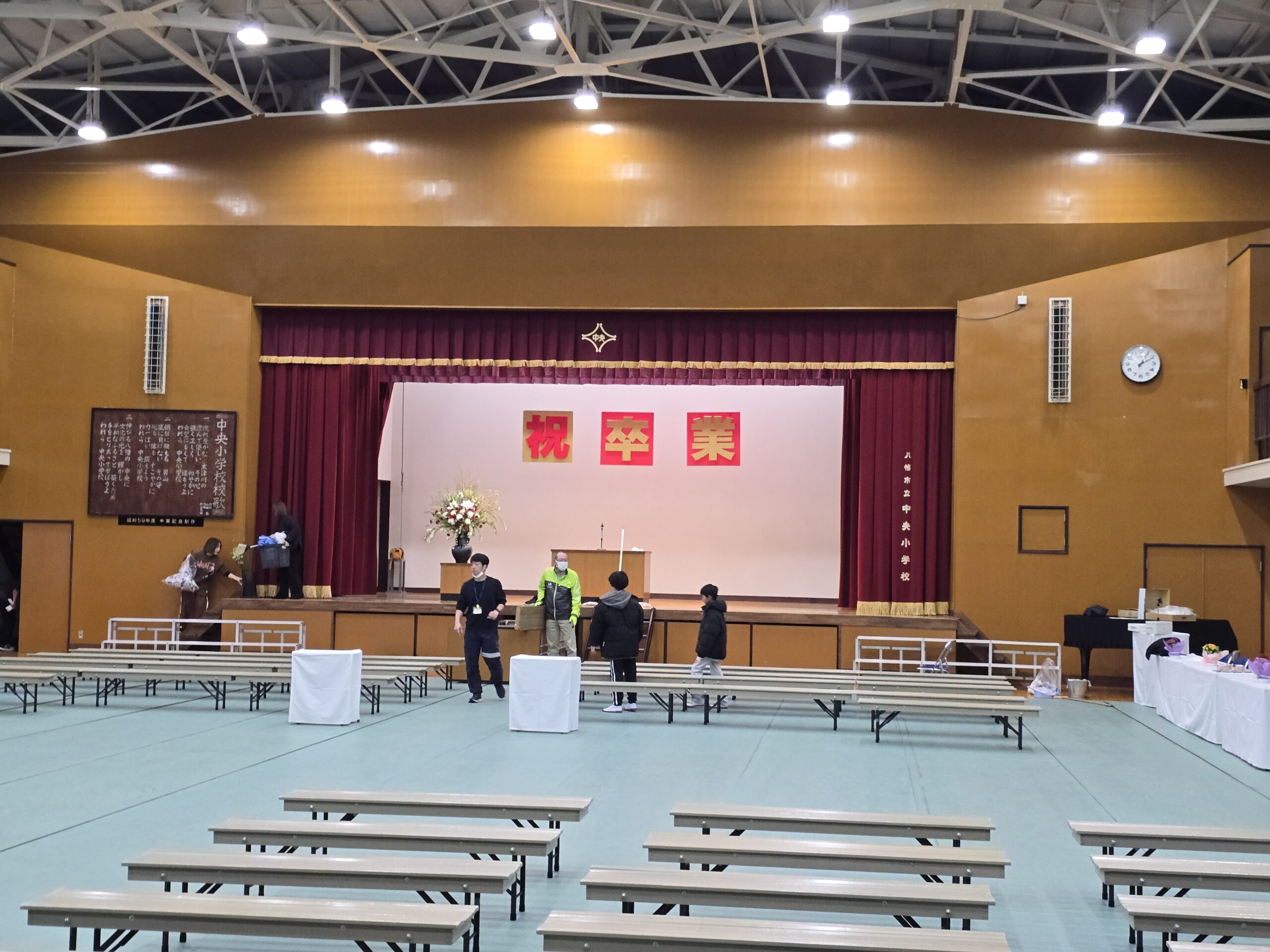 全校が下校後に、5年生が明日の式に向けて準備をしました。旅立つ6年生に中央小を安心してまかせてもらえるように、来年に向けての気持ちを高めるために、何より明日の門出の日が最高の日になるように全員が必死に頑張りました。